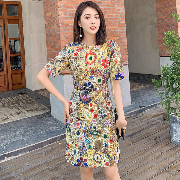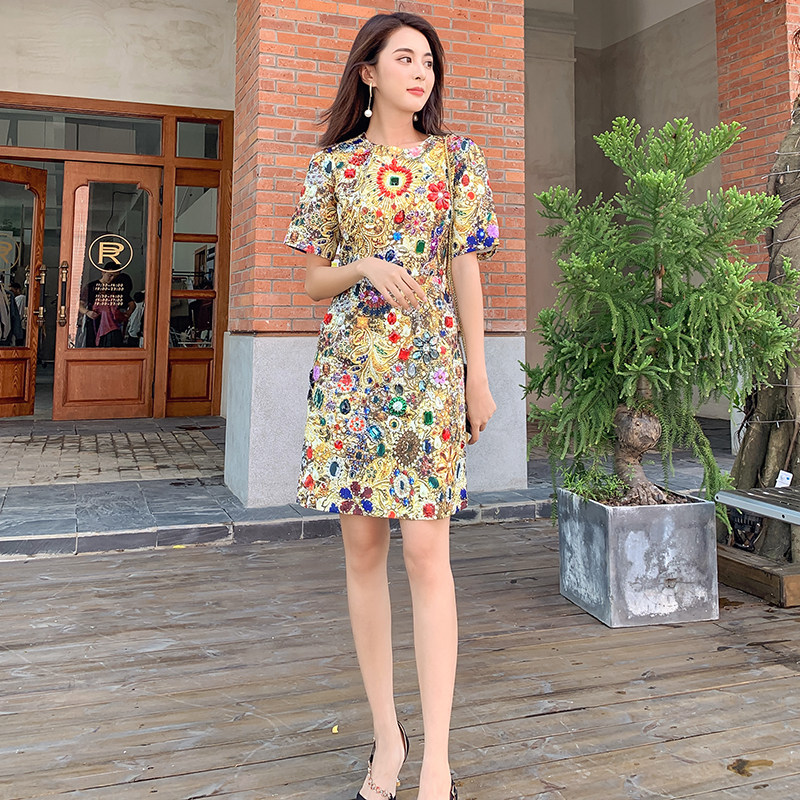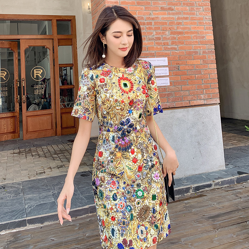 Элитное платье с коротким рукавом, демисезонное вечернее платье, с драгоценным камнем, облегающий крой