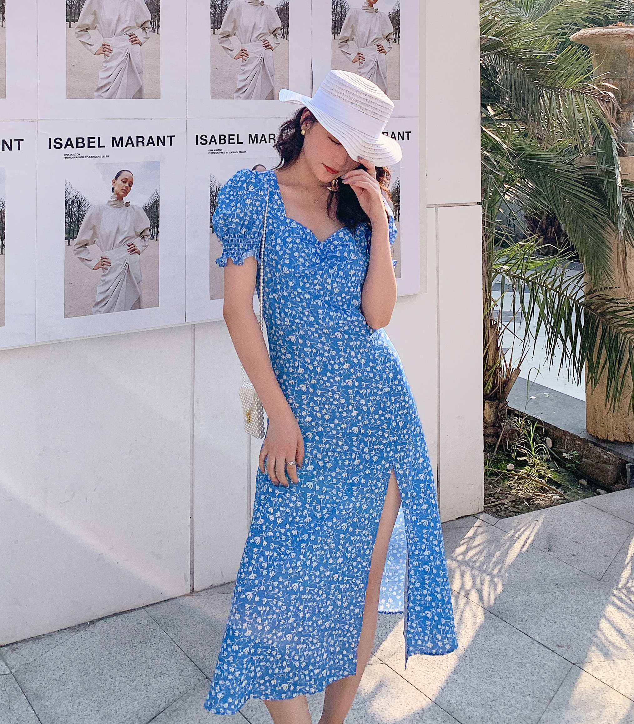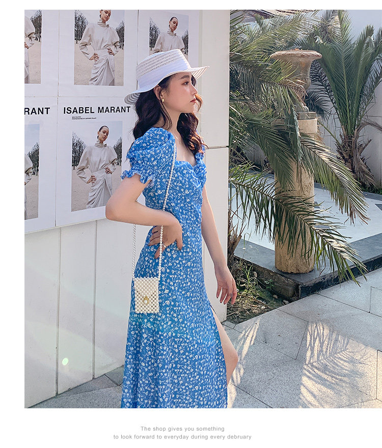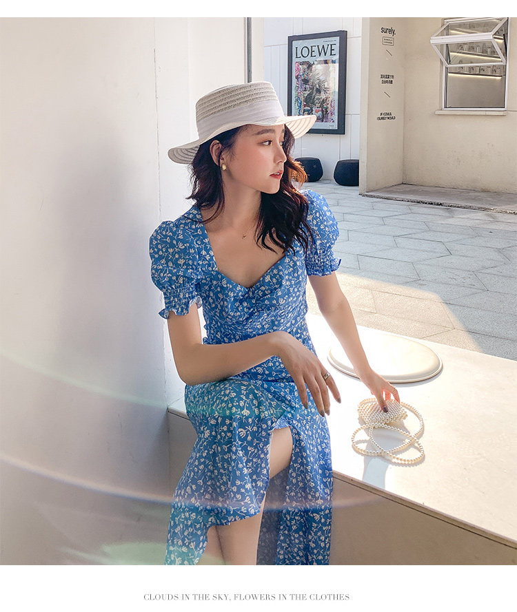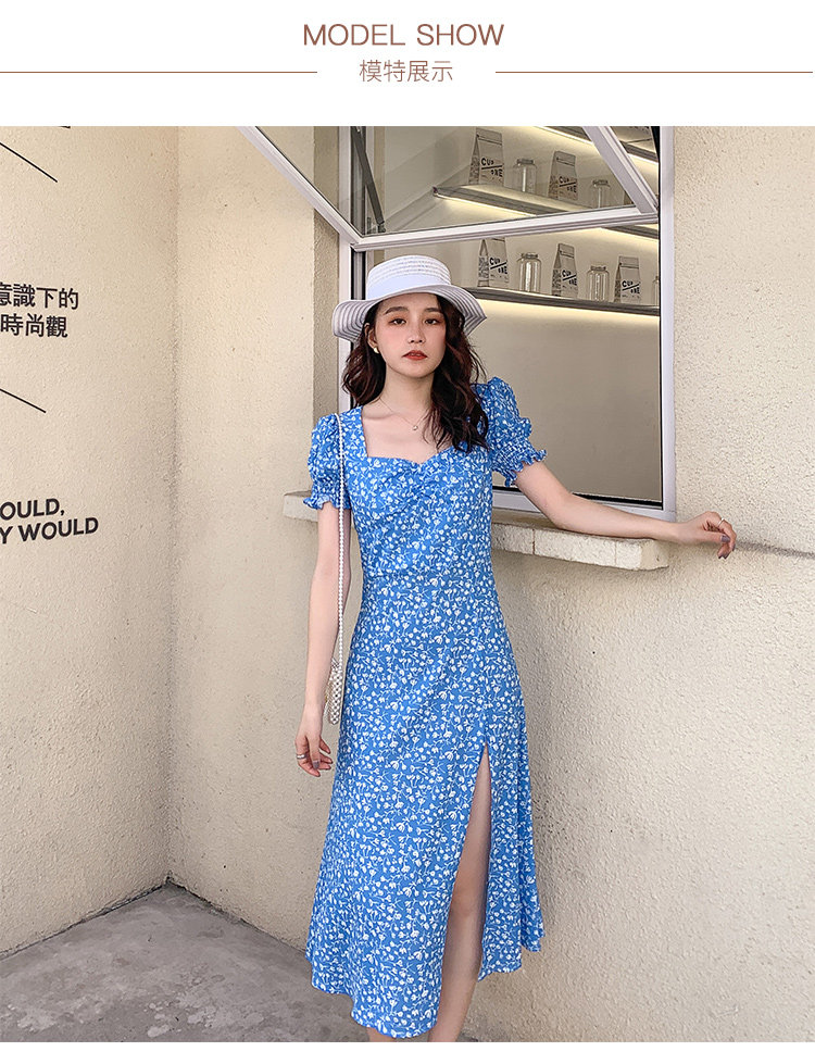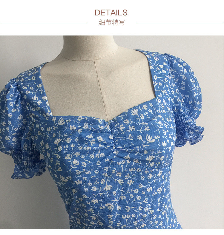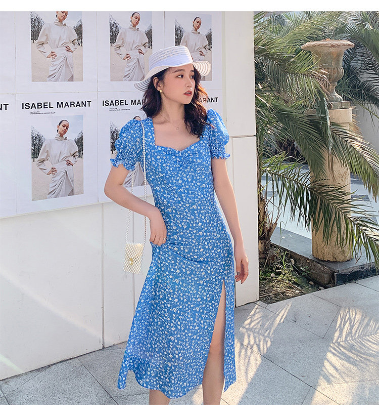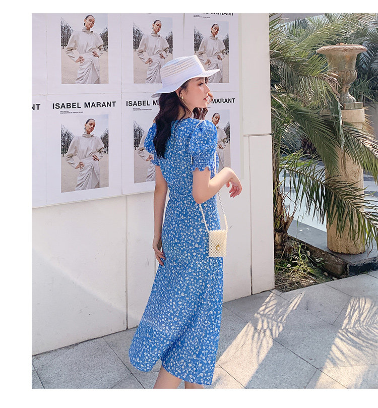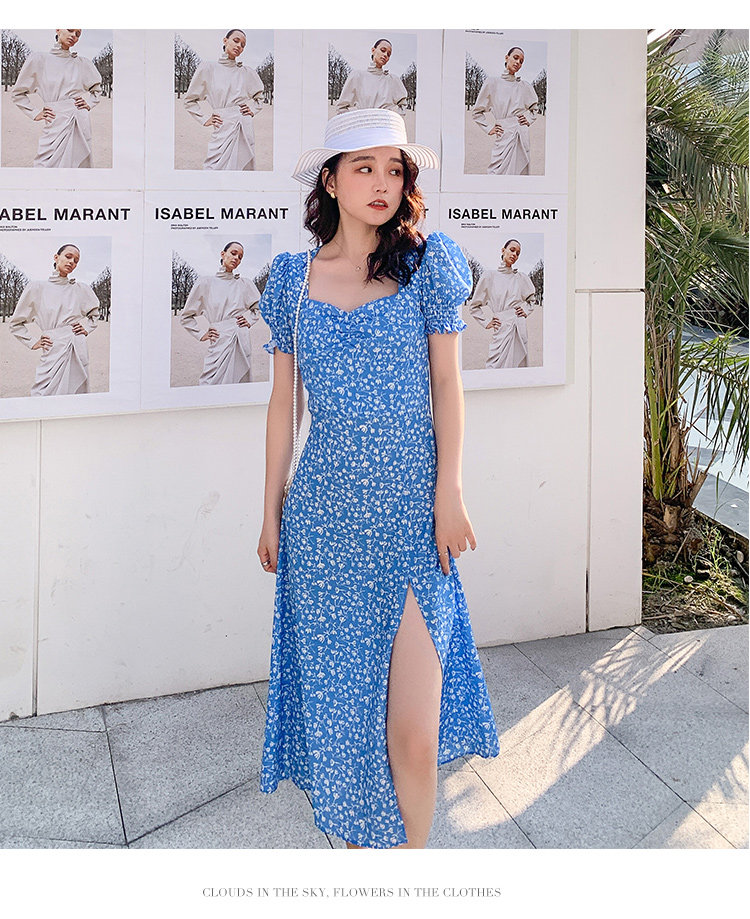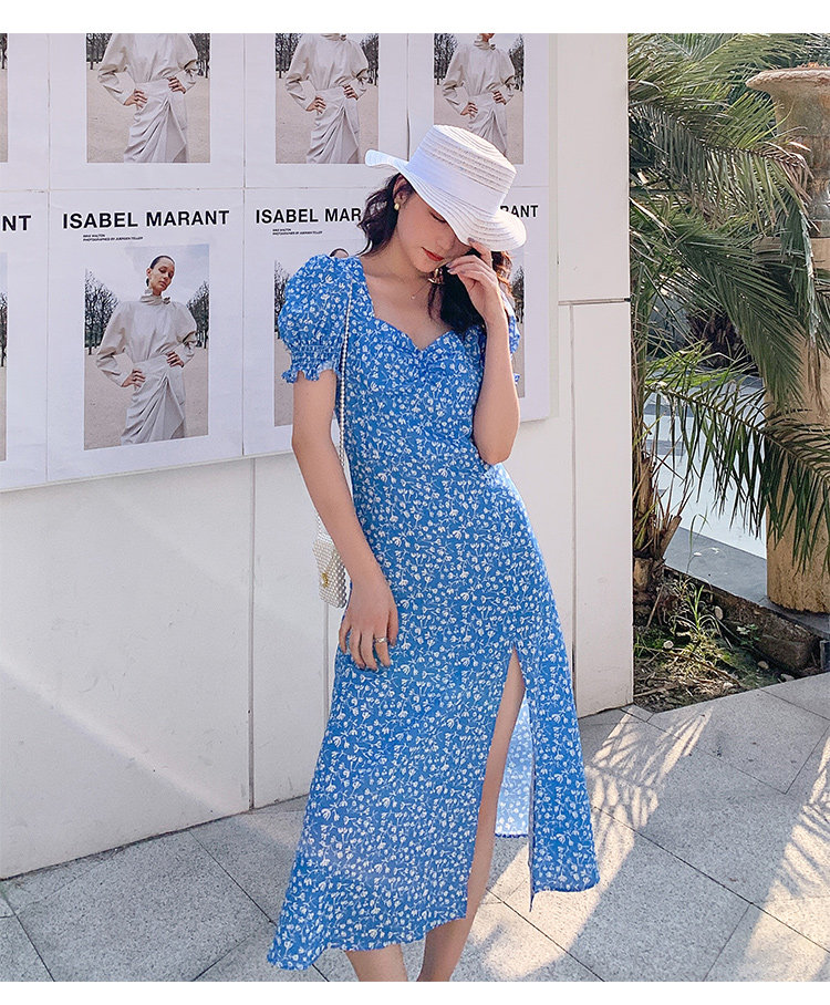 Ретро синее платье, юбка, французский стиль, цветочный принт