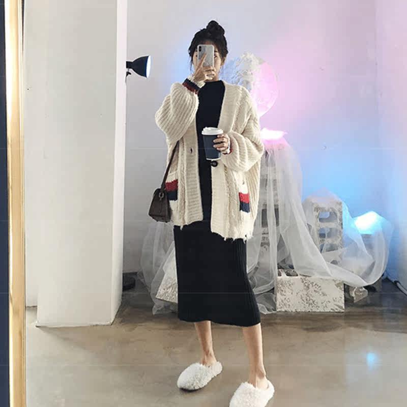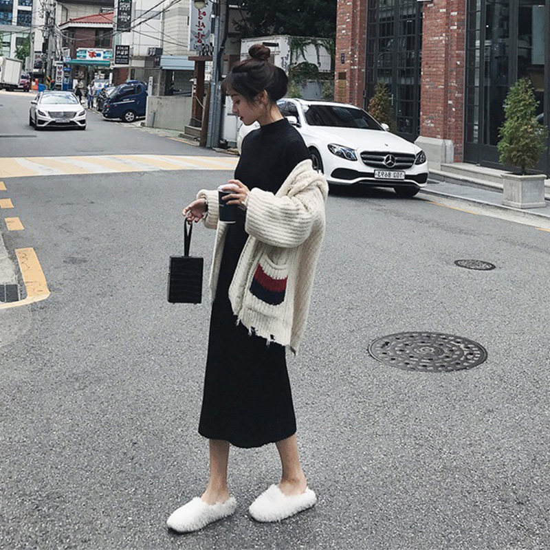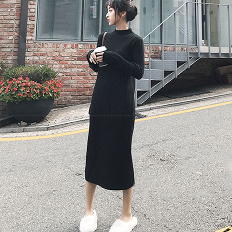 Длинное платье, демисезонная трикотажная длинная длинная юбка, увеличенная толщина, средней длины