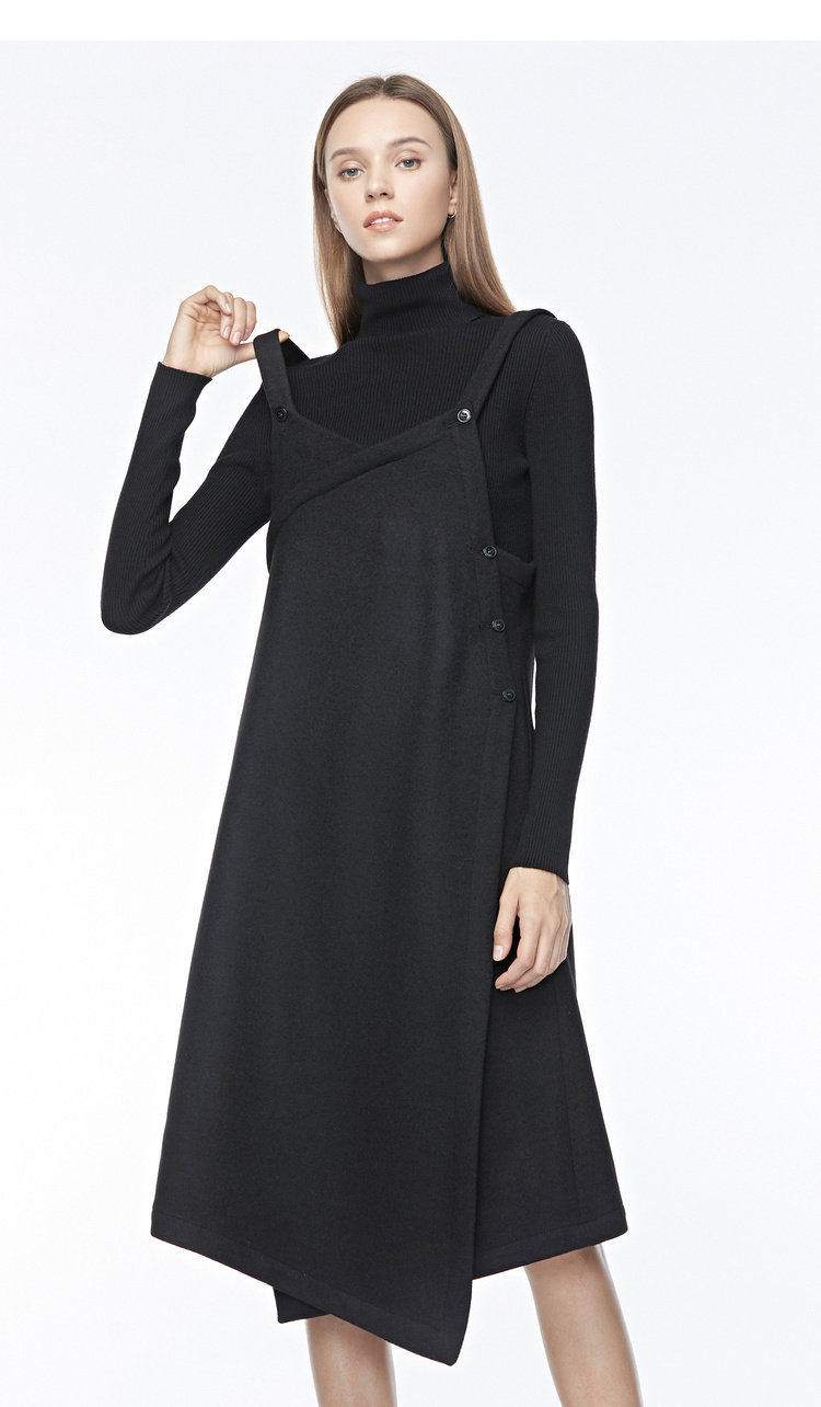 Sdeer Saint Dior Winter Женский v -neck Switch Pocket нерегулярная черная юбка Botes S19481220