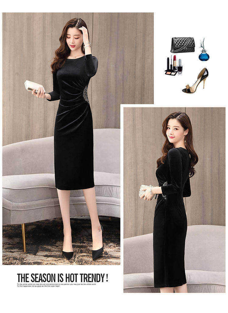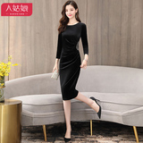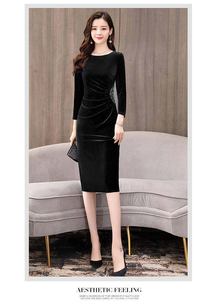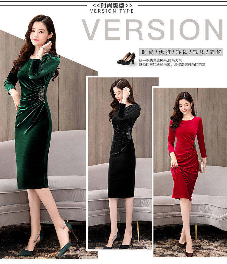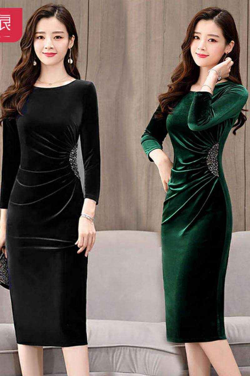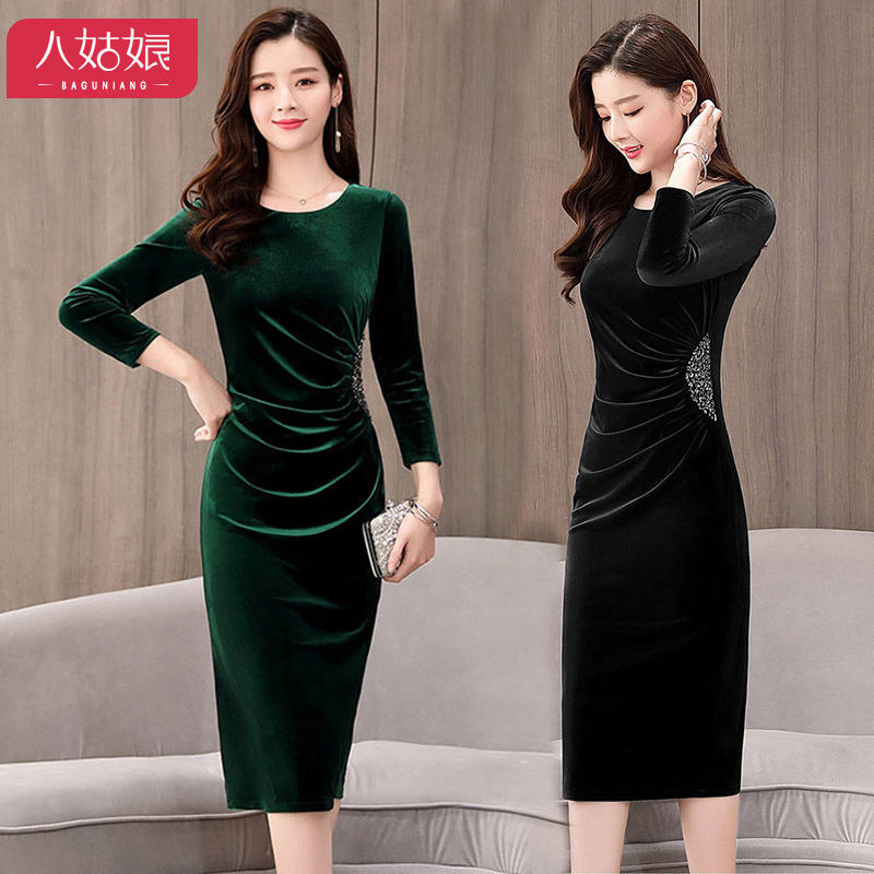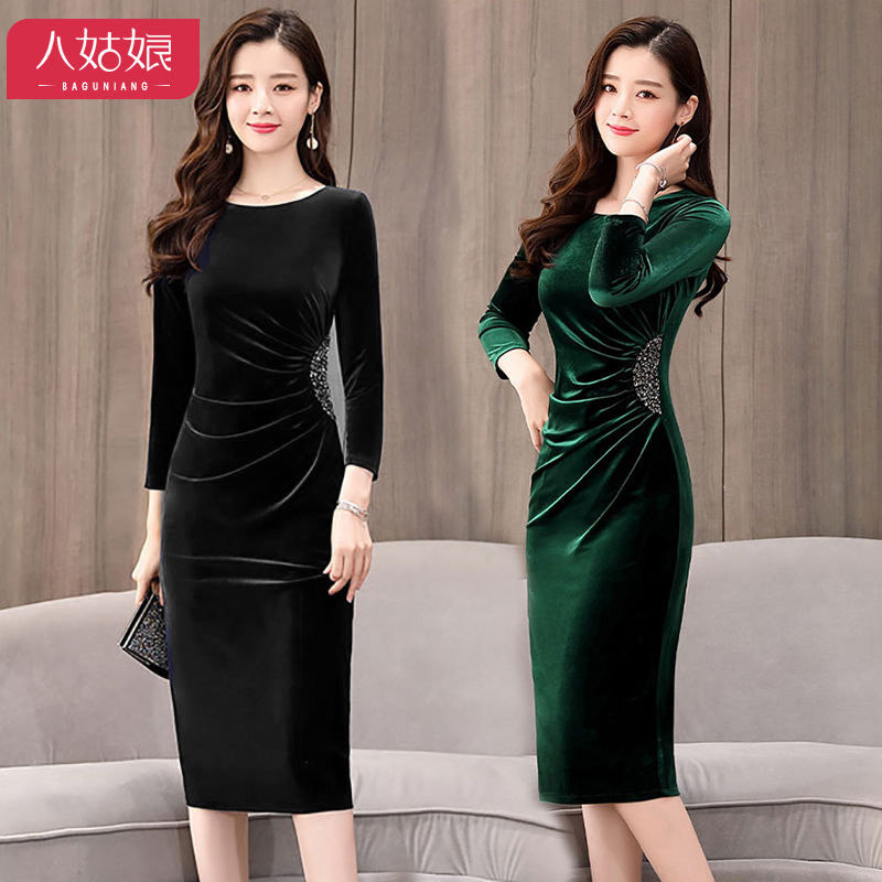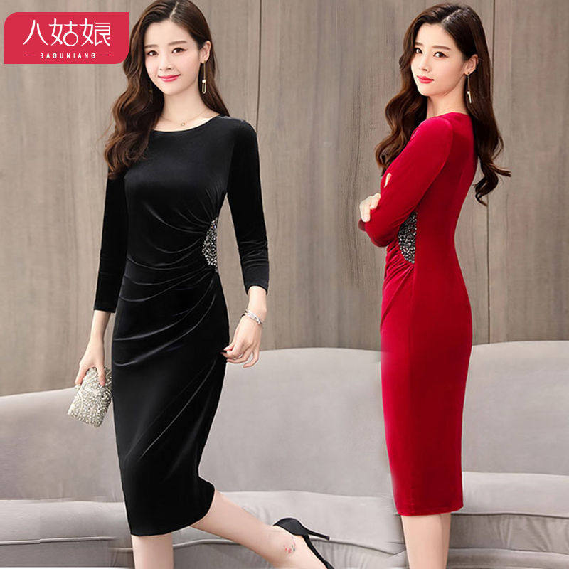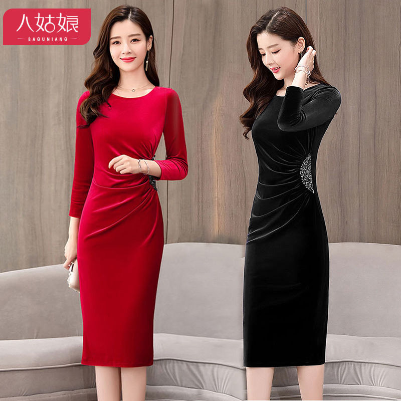 Бархатное демисезонное платье, приталенный зимний лонгслив, базовая юбка, 2019, большой размер, подходит для полных девушек