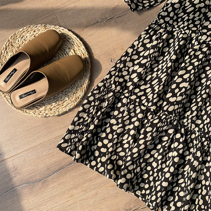 Шифоновое осеннее платье, длинный лонгслив, цветочный принт, длина миди, средней длины, рыбий хвост