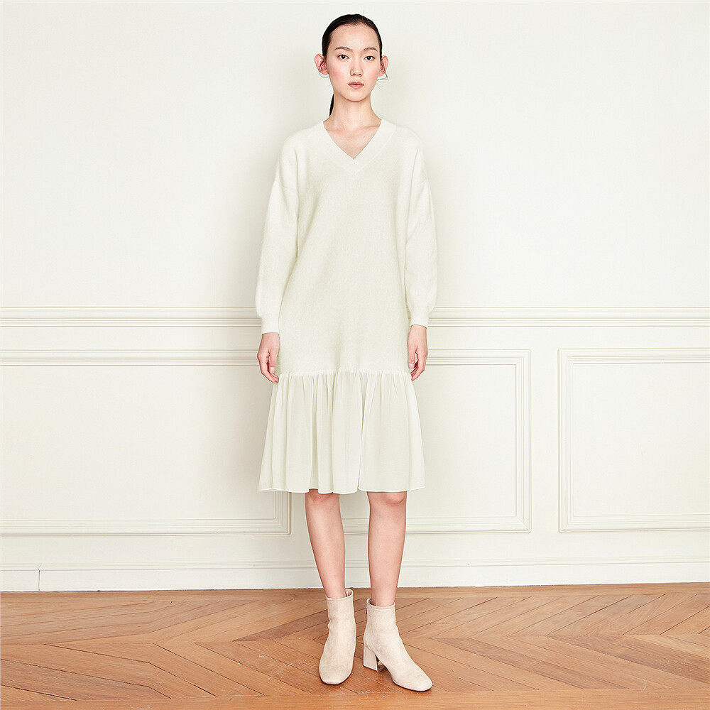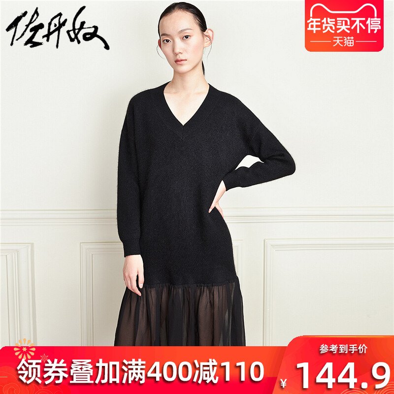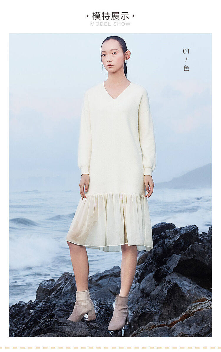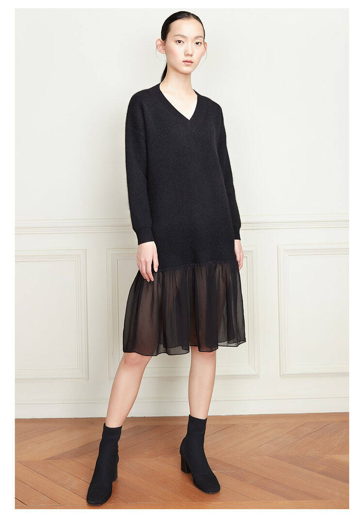 佐丹奴 Длинная дизайнерская юбка, шифоновое трикотажное платье, средней длины, V-образный вырез