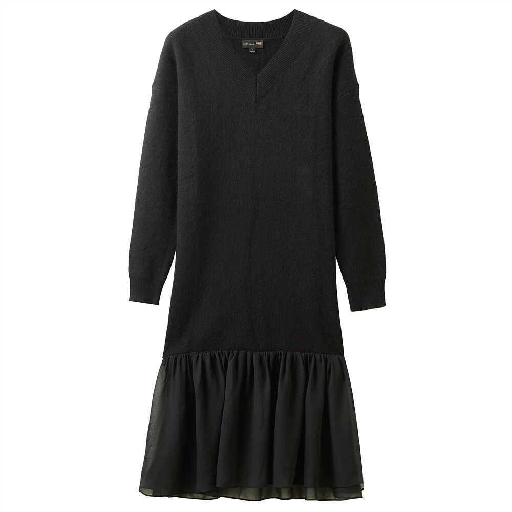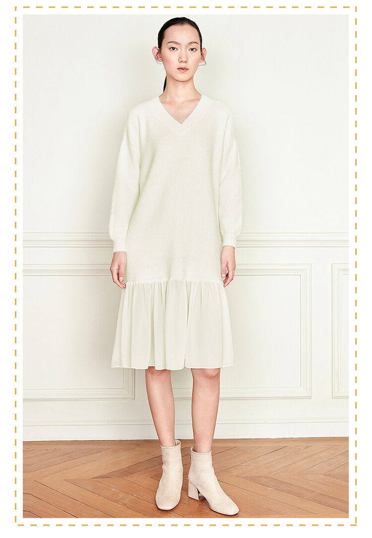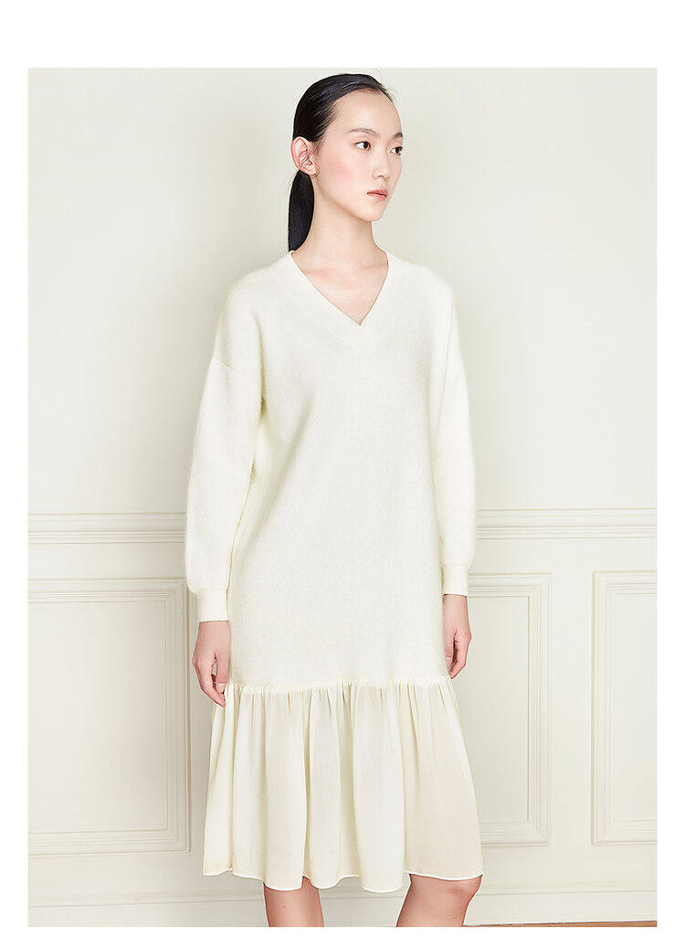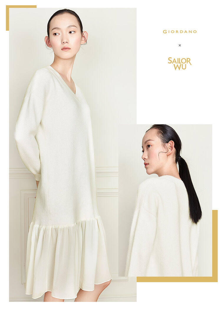 佐丹奴 Длинная дизайнерская юбка, шифоновое трикотажное платье, средней длины, V-образный вырез