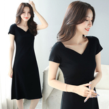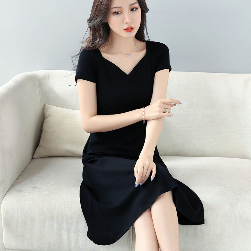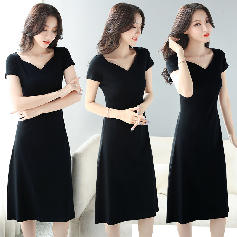 Летнее длинное эластичное платье, длинная длинная юбка, большой размер, средней длины, длина макси, V-образный вырез, короткий рукав, А-силуэт