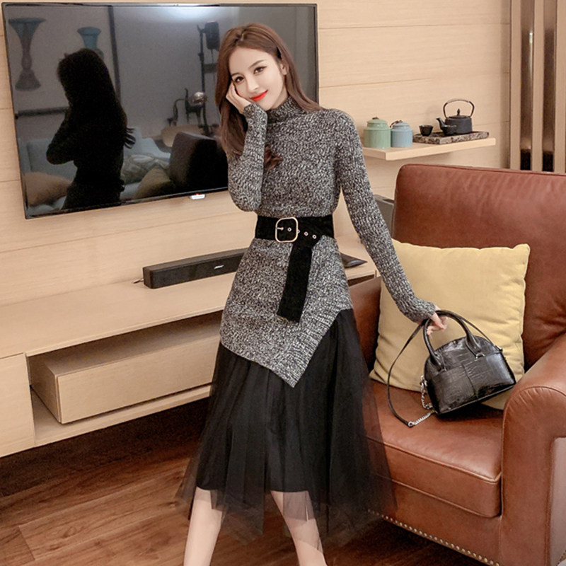 Демисезонный трикотажный свитер, юбка в складку, комплект, сексуальное платье
