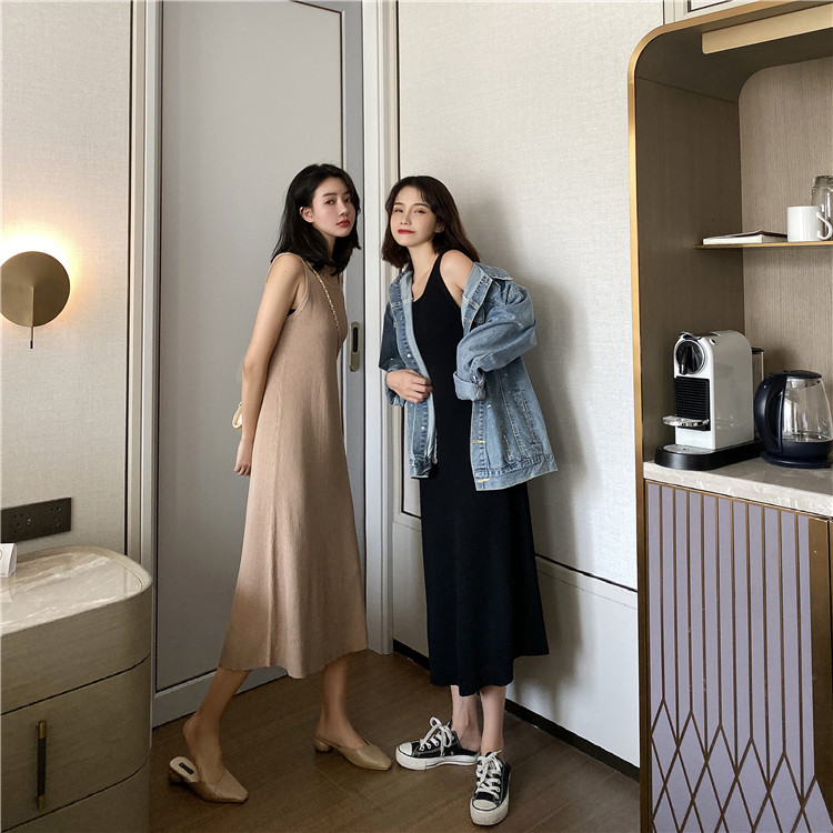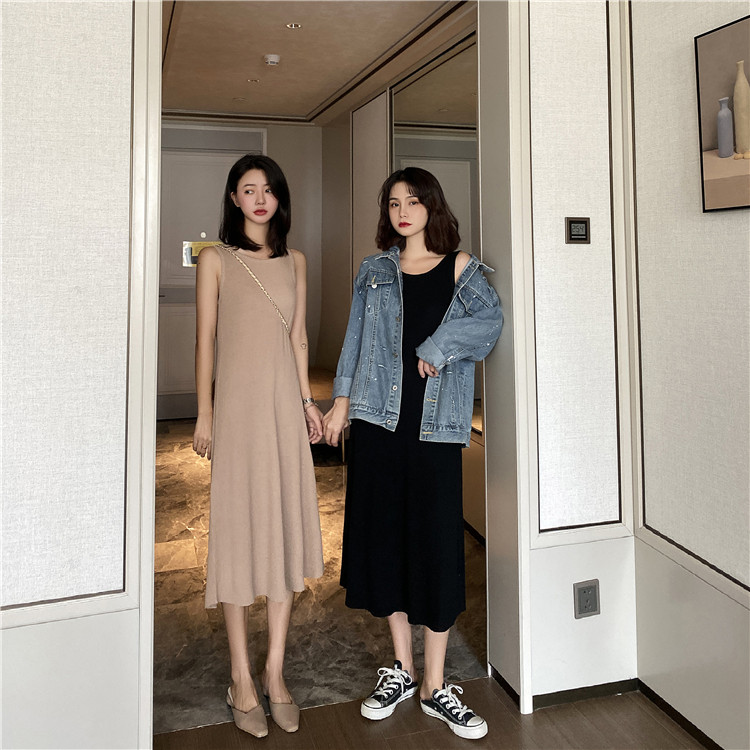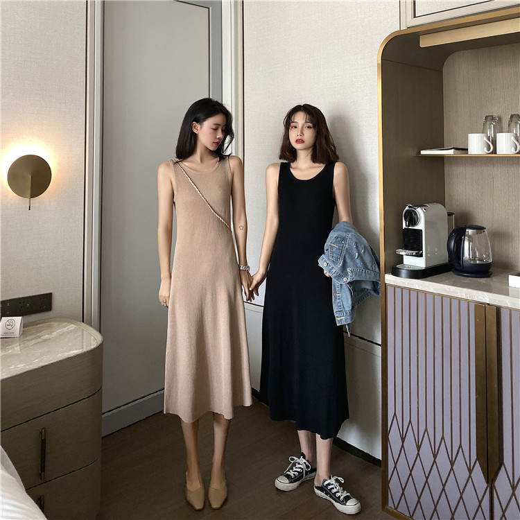 Летнее трикотажное платье без рукавов, черная майка топ, длинное платье без рукавов, весенняя длинная юбка, длина миди