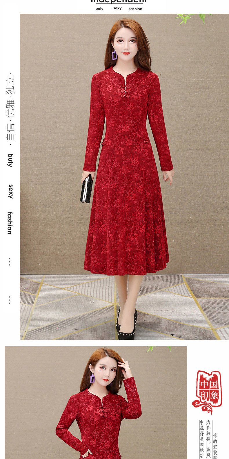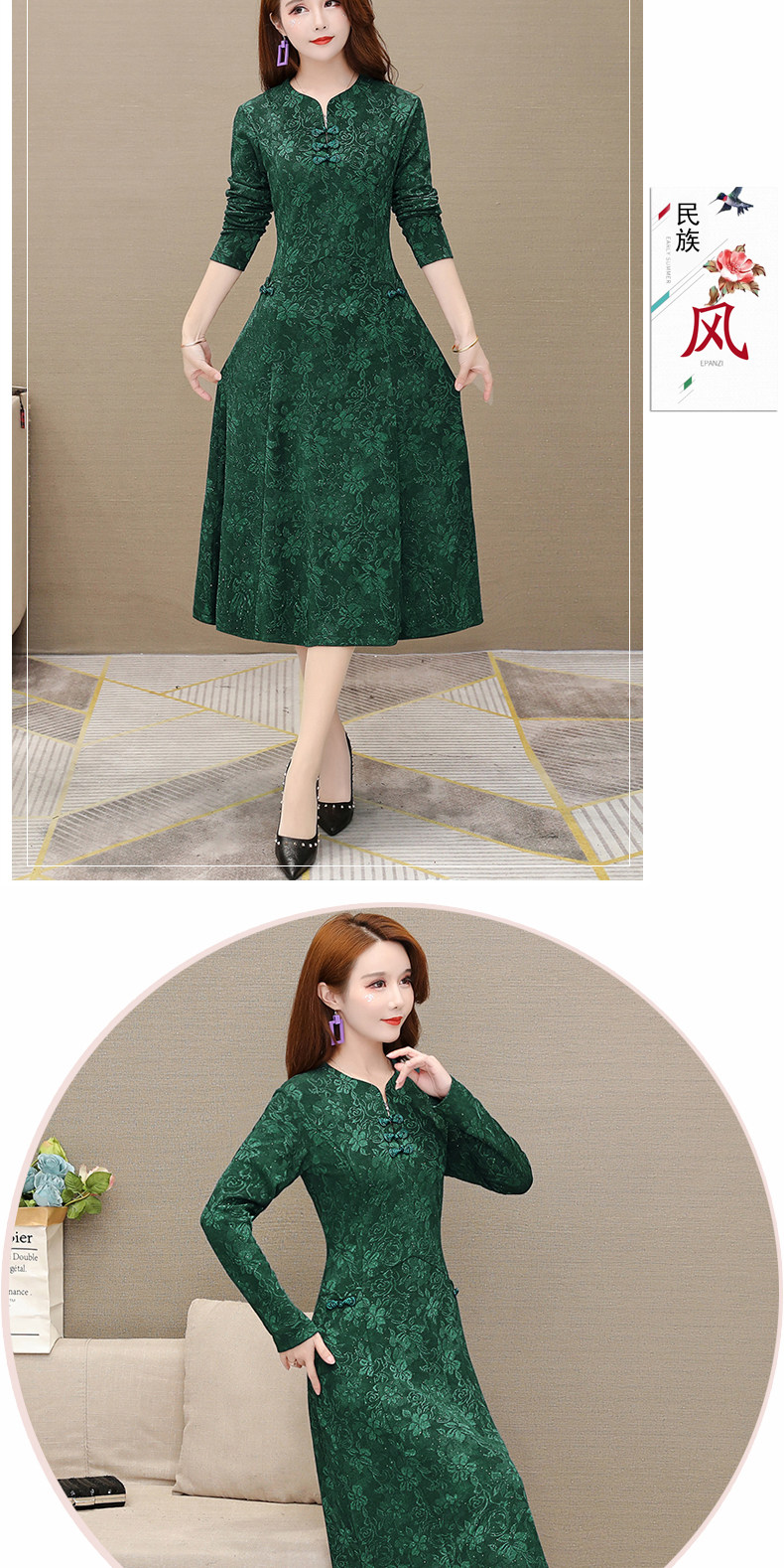 Осеннее ципао, платье, длинная юбка, 2023 года, в западном стиле, средней длины