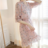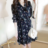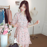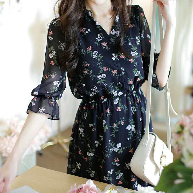 Шифоновое летнее платье, юбка, приталенный базовый корсет, в цветочек, в корейском стиле