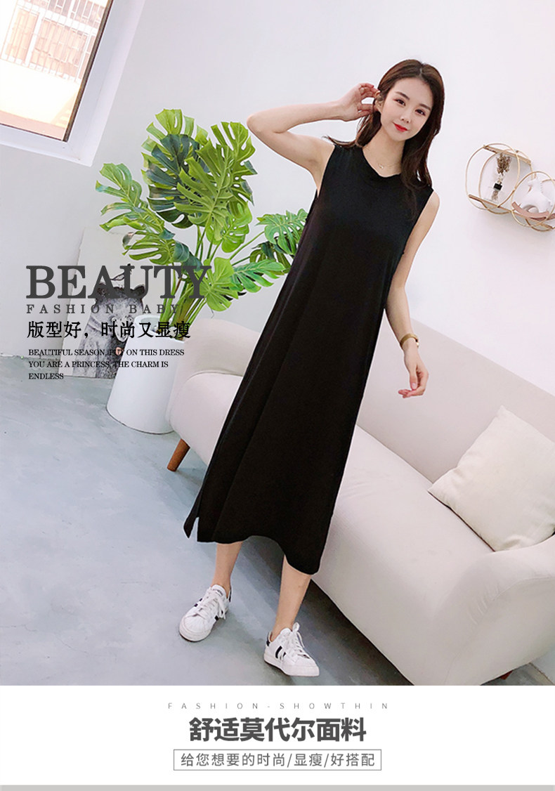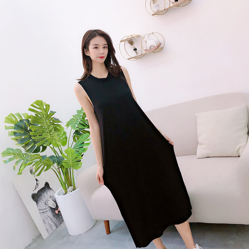 Летнее платье без рукавов без рукавов, тонкий топ с чашечками, базовая длинная юбка, в корейском стиле, по фигуре