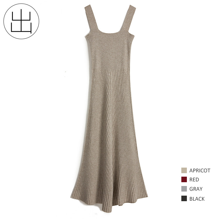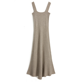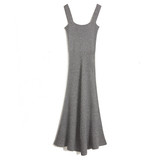 Шерстяная весенняя длинная юбка, трикотажное платье, квадратный вырез, А-силуэт