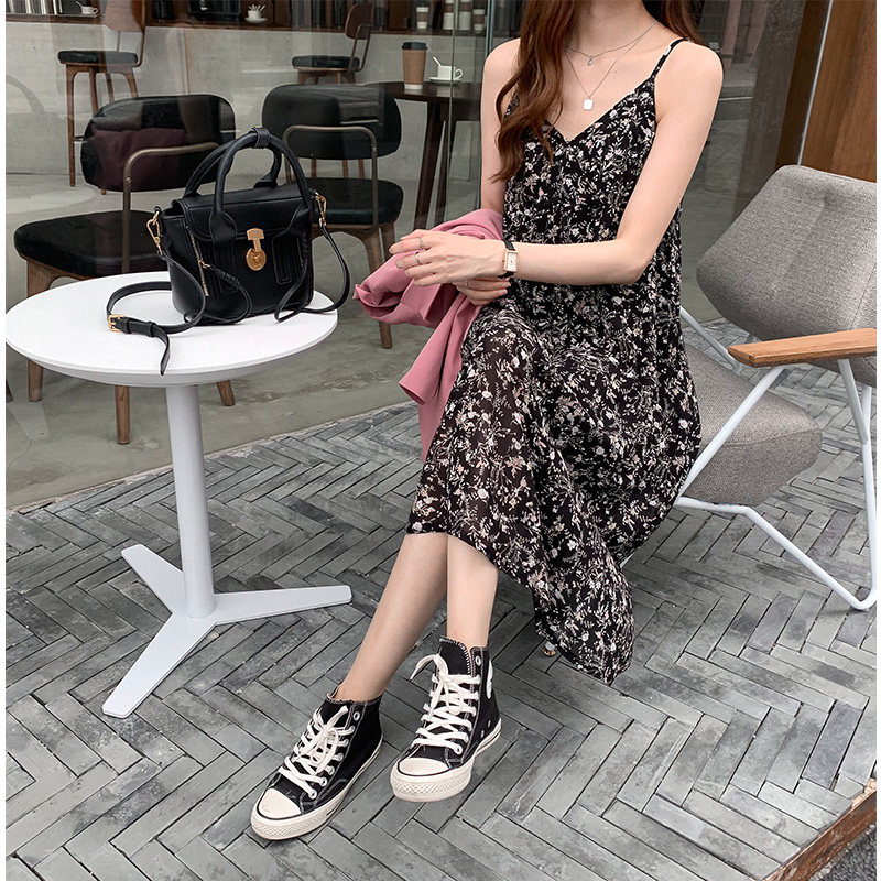 Шифоновый костюм, осеннее базовое платье, в цветочек, 2020, эффект подтяжки