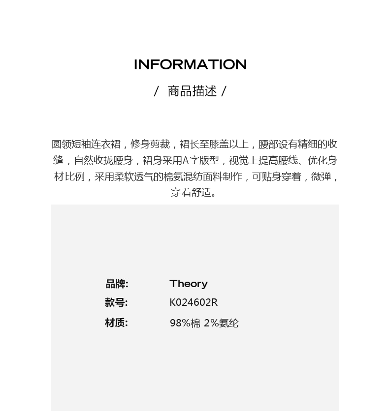 Теория новая женская хлопковая круглая шея короткая -платье с помощью k024602r
