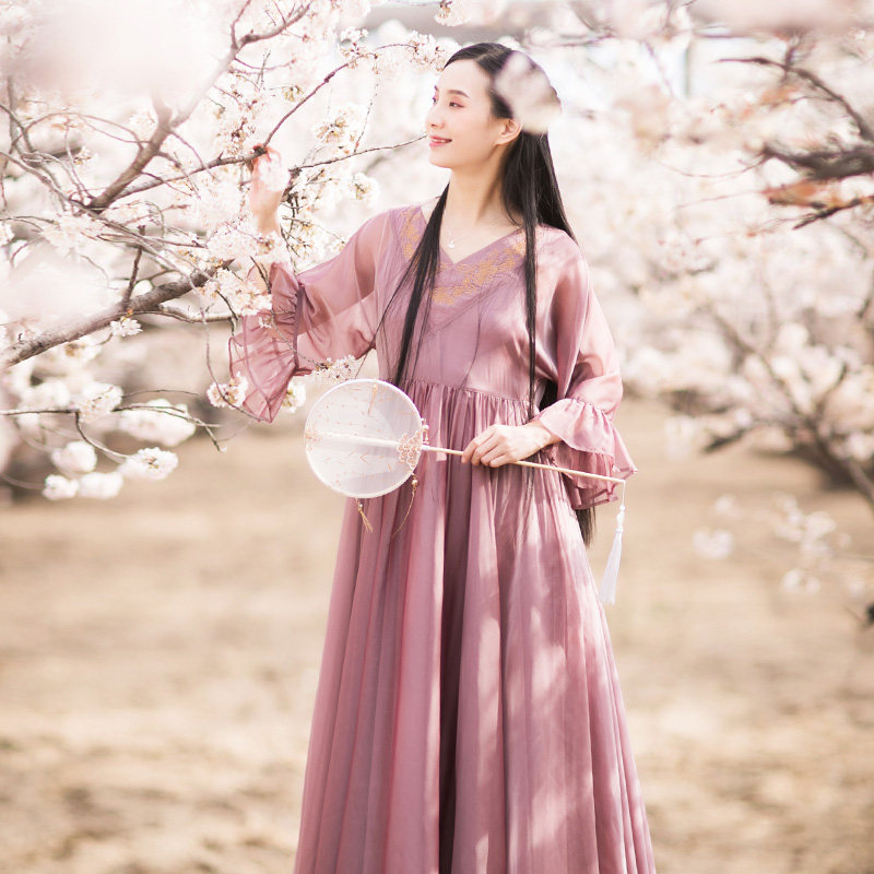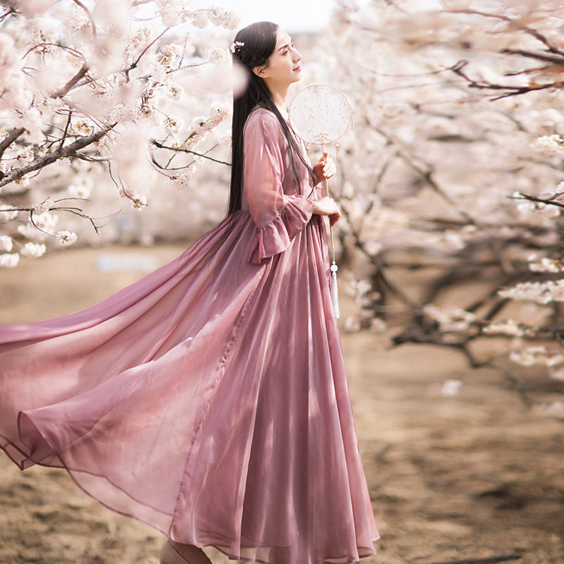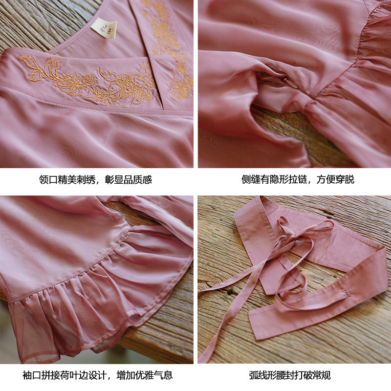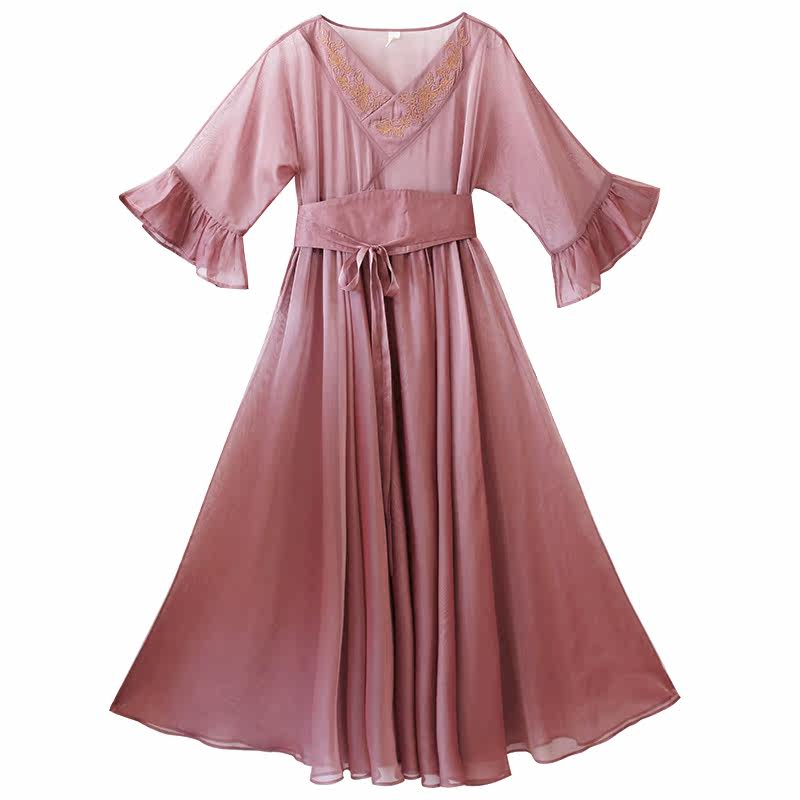 Ханьфу, летняя ретро длинная юбка, шифоновое платье, из хлопка и льна, с вышивкой