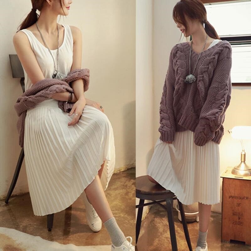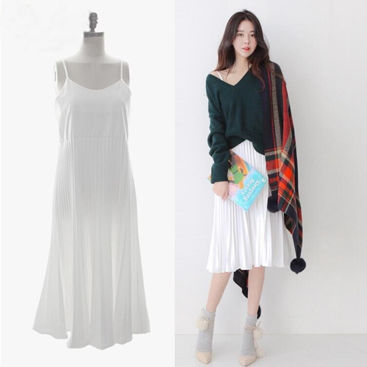 Весеннее летнее базовое длинное шифоновое платье без рукавов, 2020, в корейском стиле, эффект подтяжки, средней длины