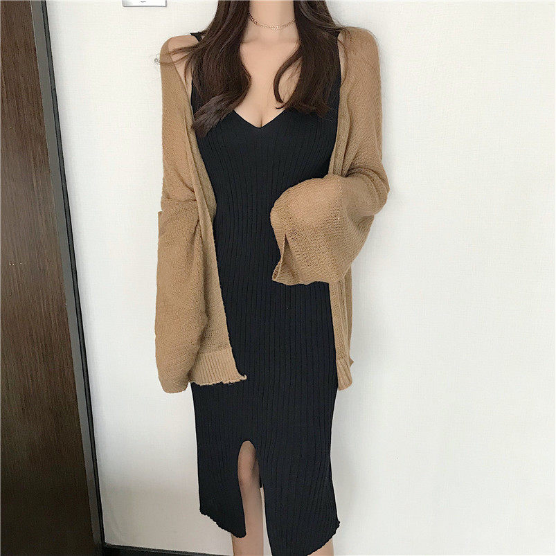 Шерстяное платье-комбинация, юбка, черный длинный трикотажный жилет, платье без рукавов, 2018, V-образный вырез, облегающий крой