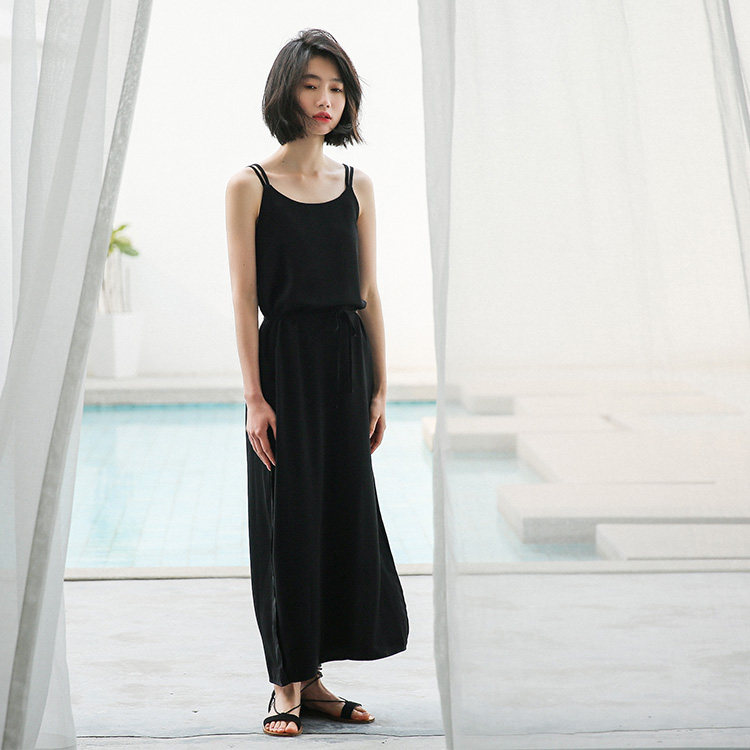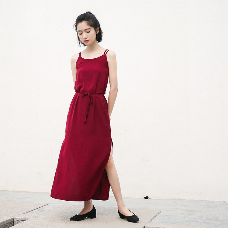 Платье, длинная сексуальная длинная юбка, платье-комбинация, французский стиль, средней длины