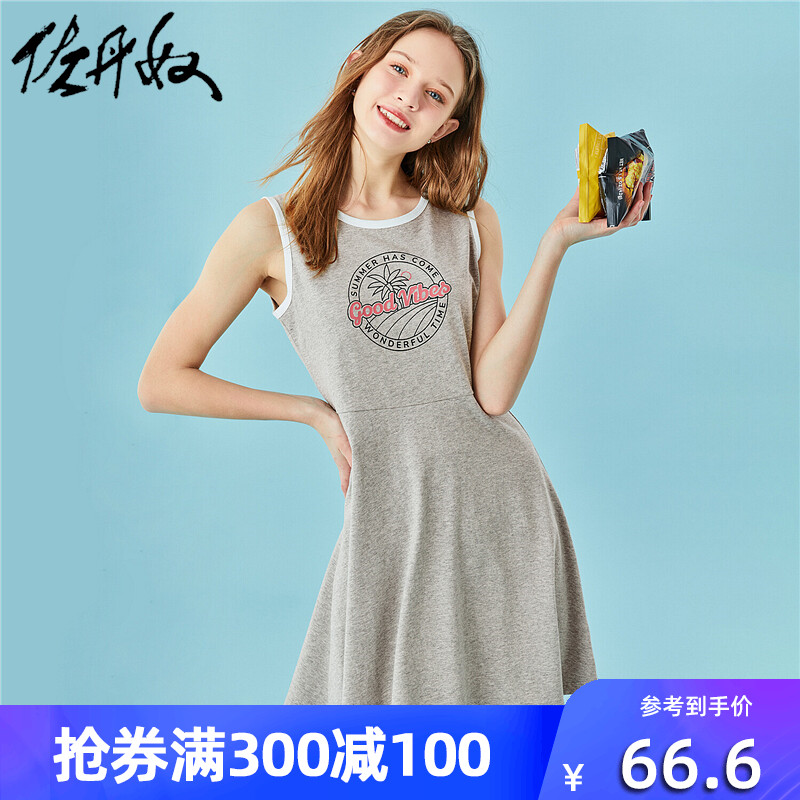 佐丹奴 Платье без рукавов для отдыха, хлопковое платье с рукавами без рукавов, 20 года