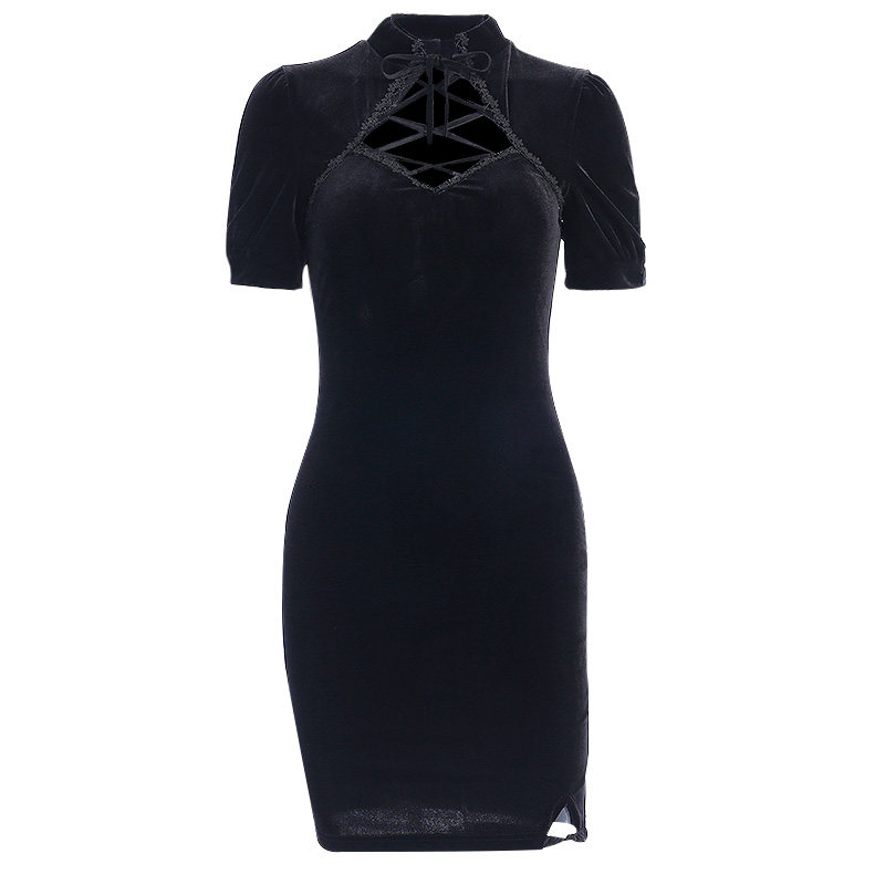 Ретро брендовое платье, бархатная мини-юбка, облегающий крой, с акцентом на бедрах