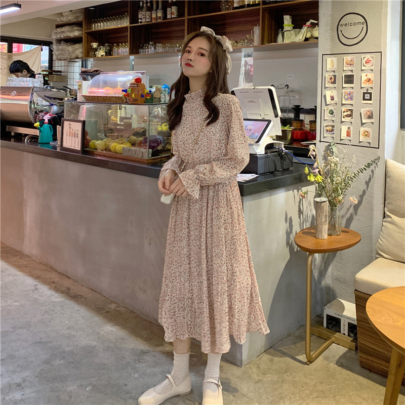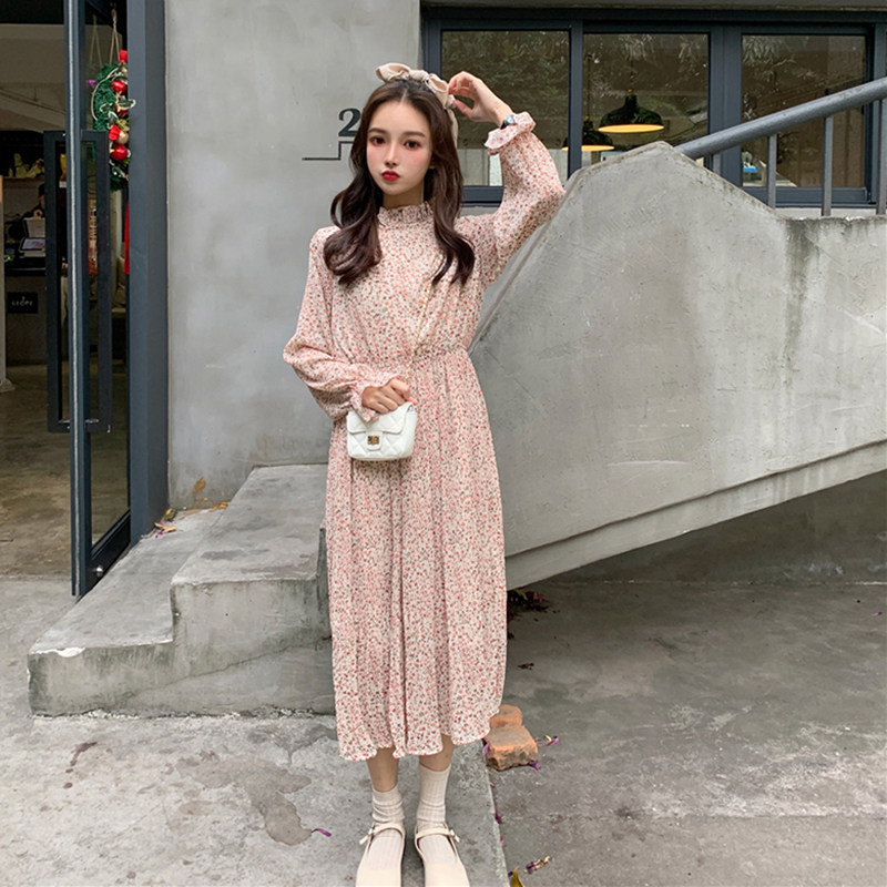 Летний милый длинный приталенный корсет, шифоновый лонгслив, платье, 2020, цветочный принт, средней длины