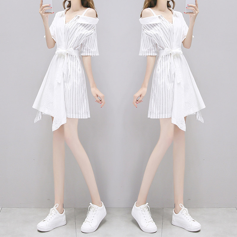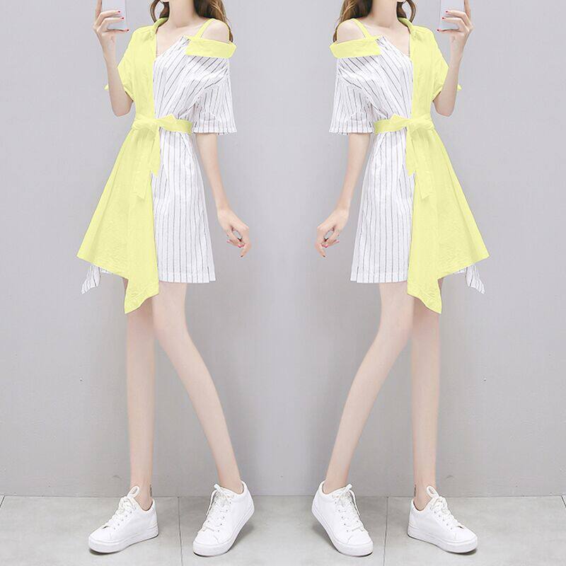 Летнее платье, комплект, рубашка, сезон 2021, открытые плечи, имитация рубашки