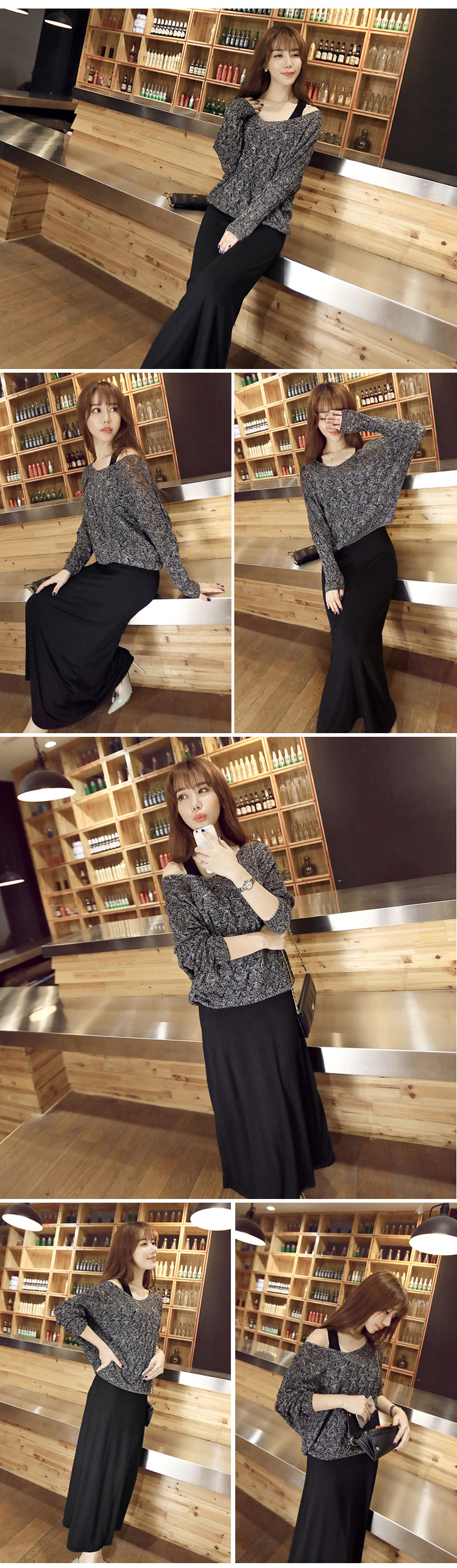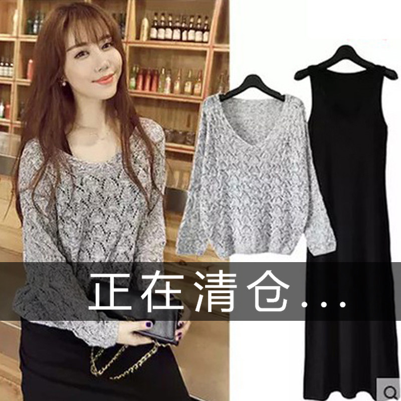 Комплект, осенний трикотажный свитер, платье, 2023, с лямками