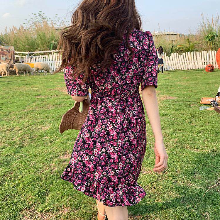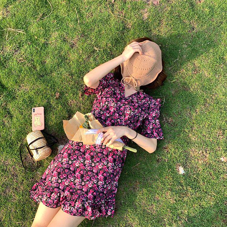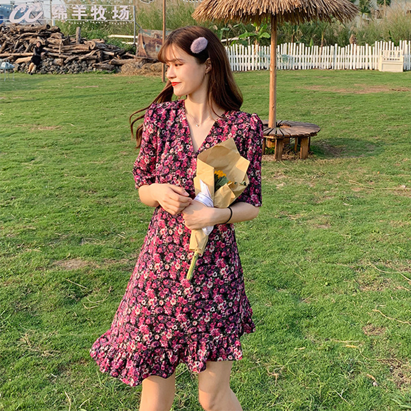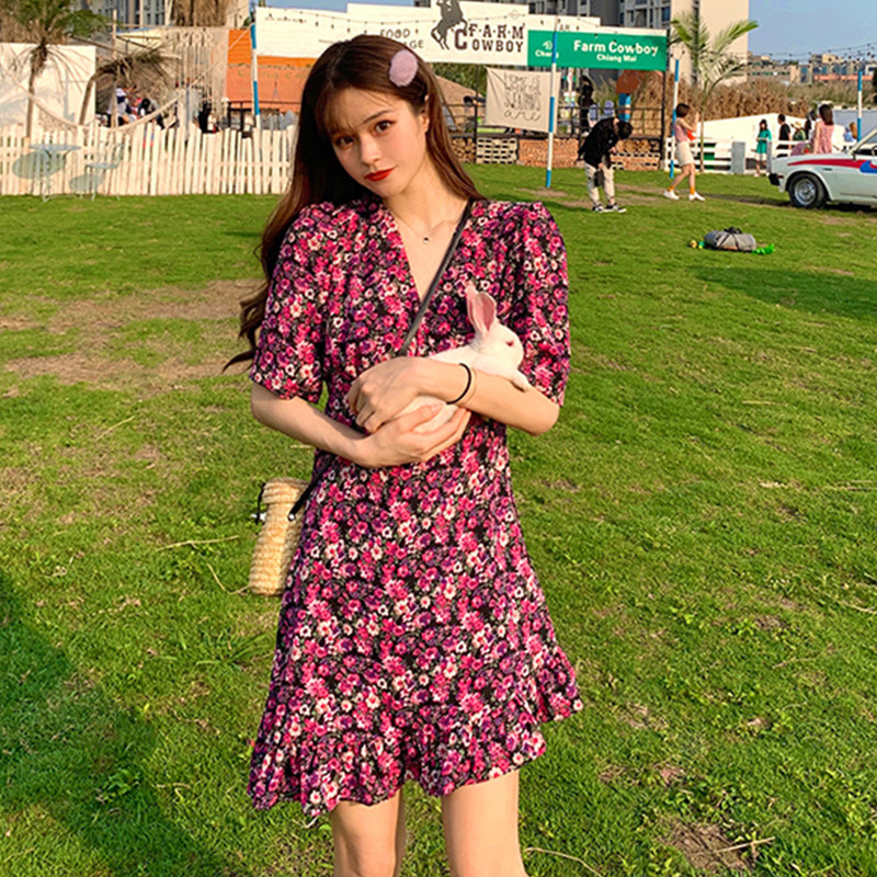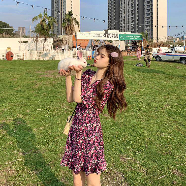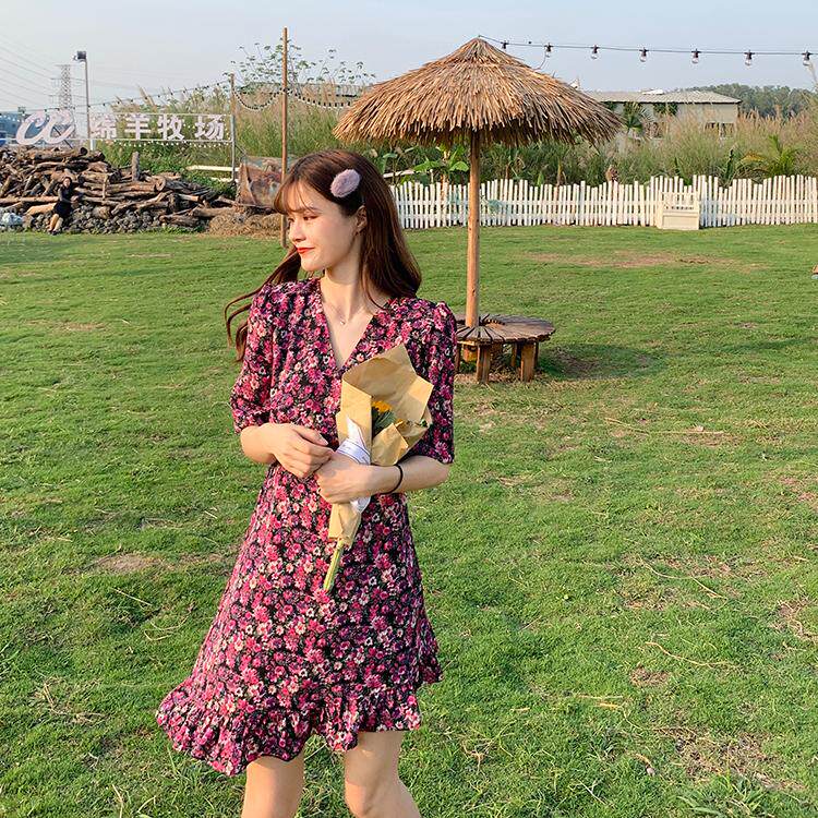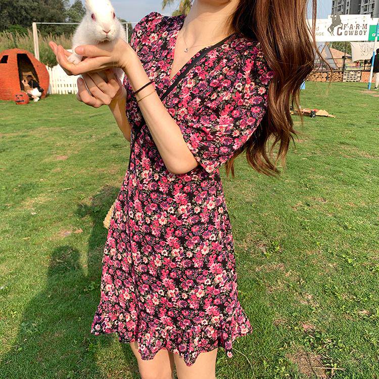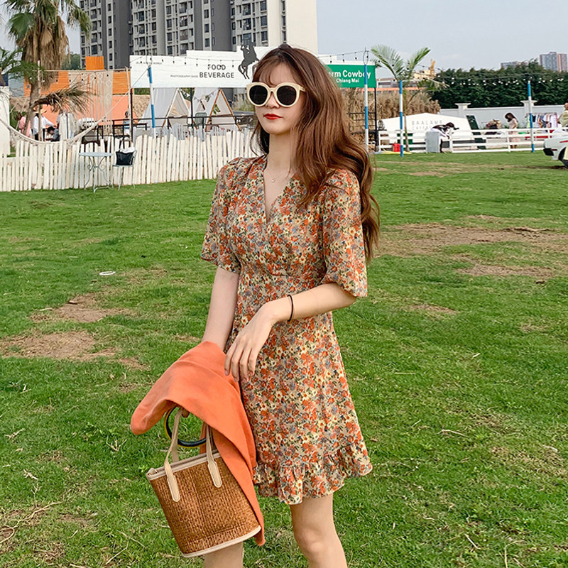 Летний приталенный корсет, брендовое платье, 2020, V-образный вырез, цветочный принт