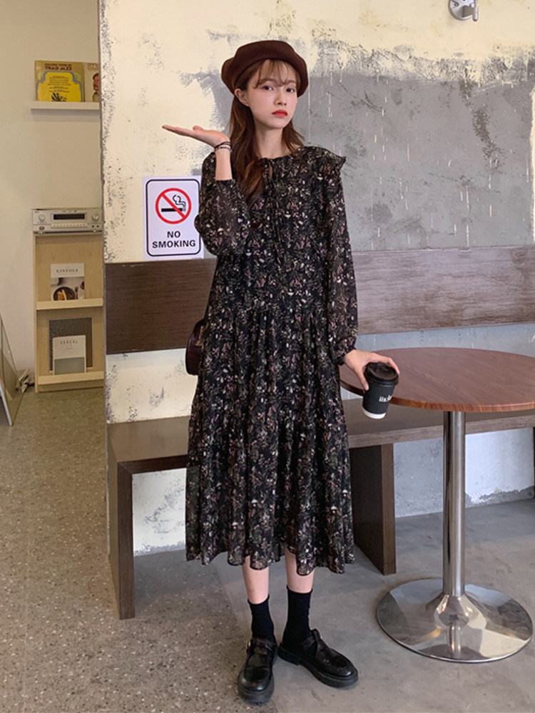 Летняя свежая длинная шифоновая юбка для школьников и студентов, лонгслив, платье, 2020, средней длины, по фигуре