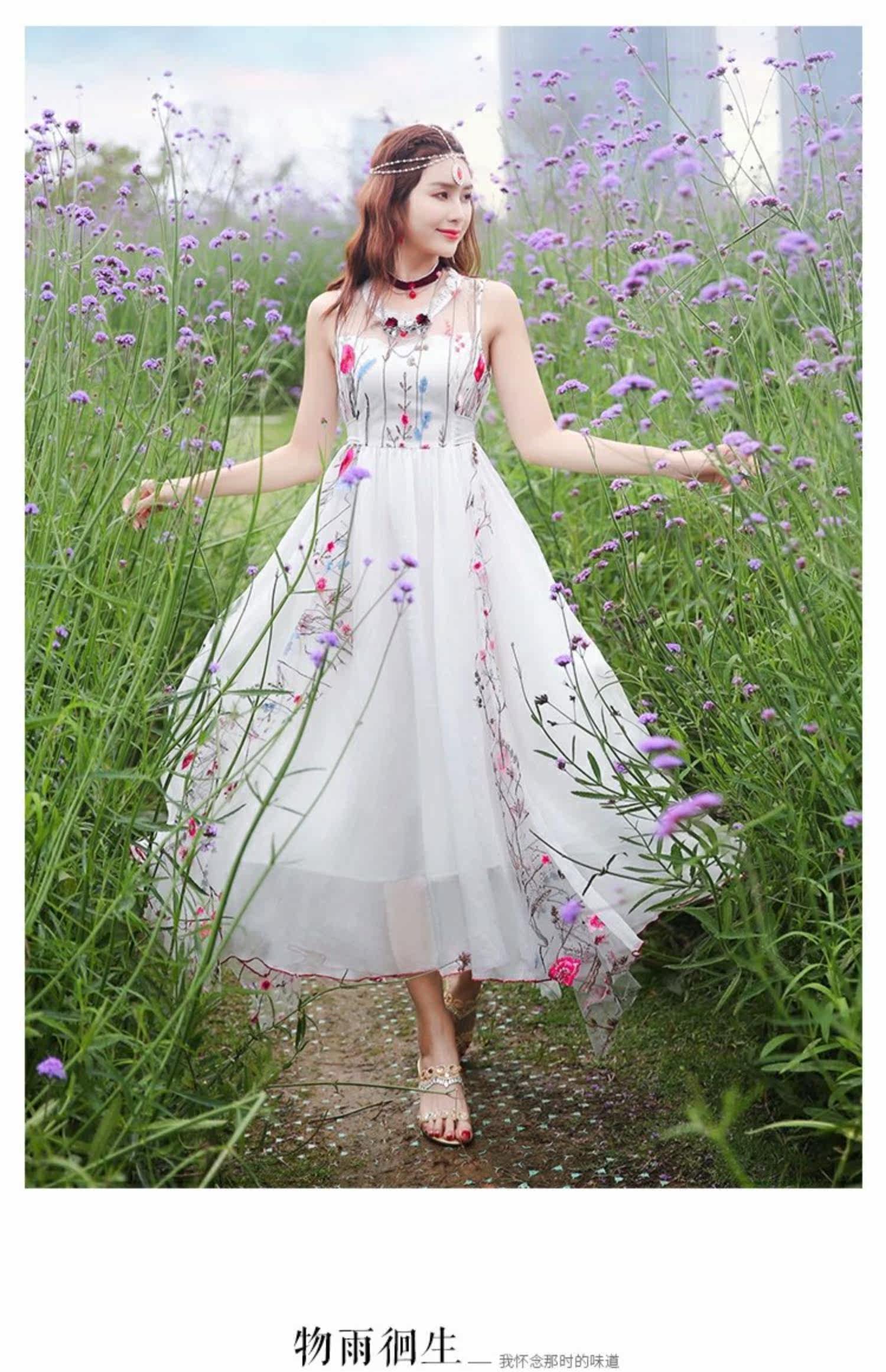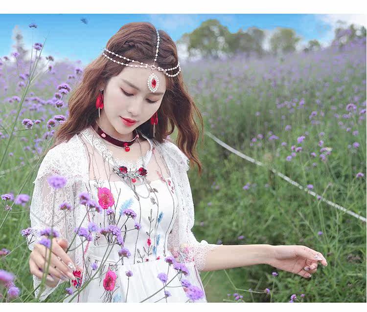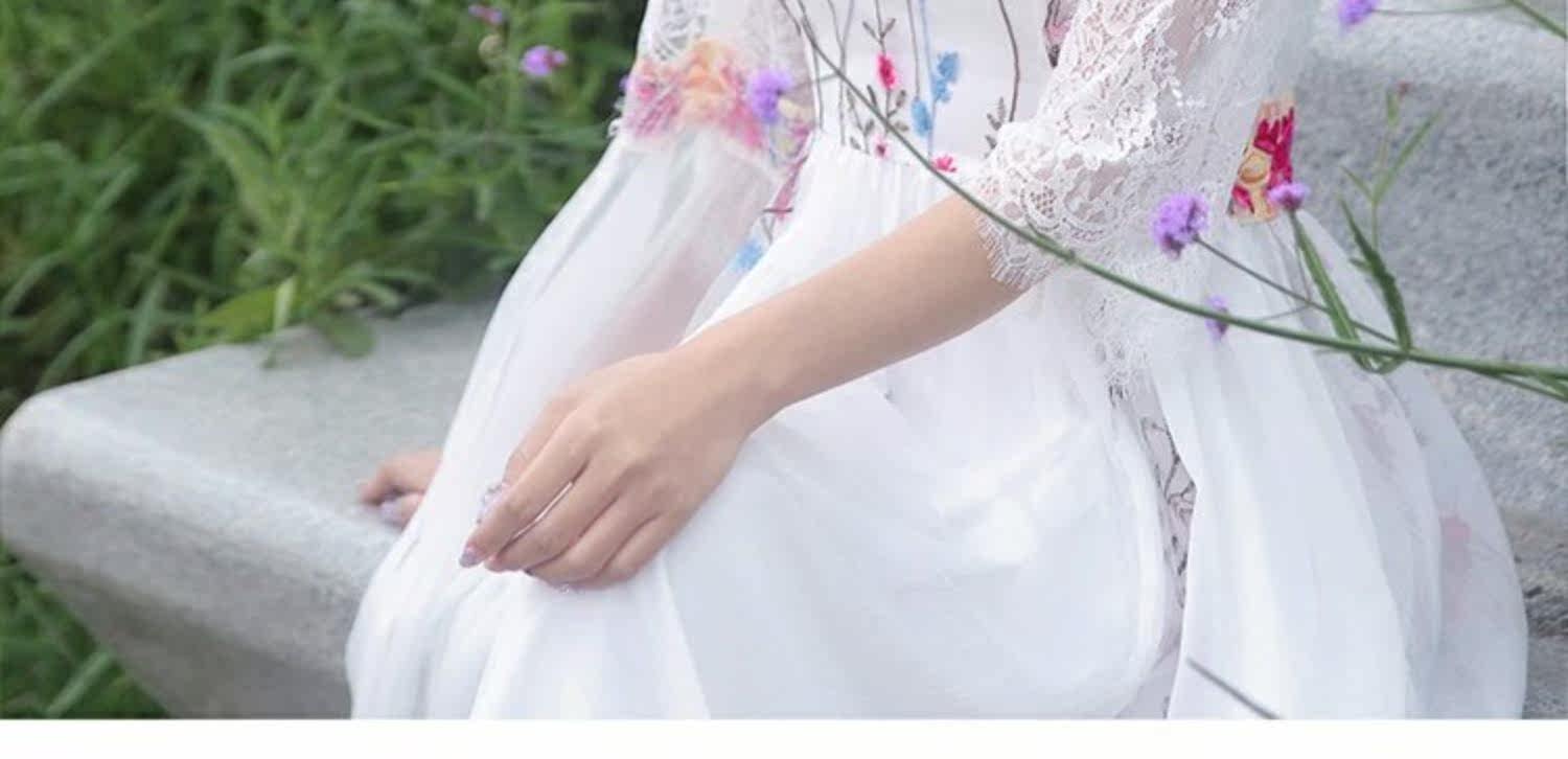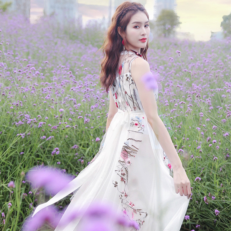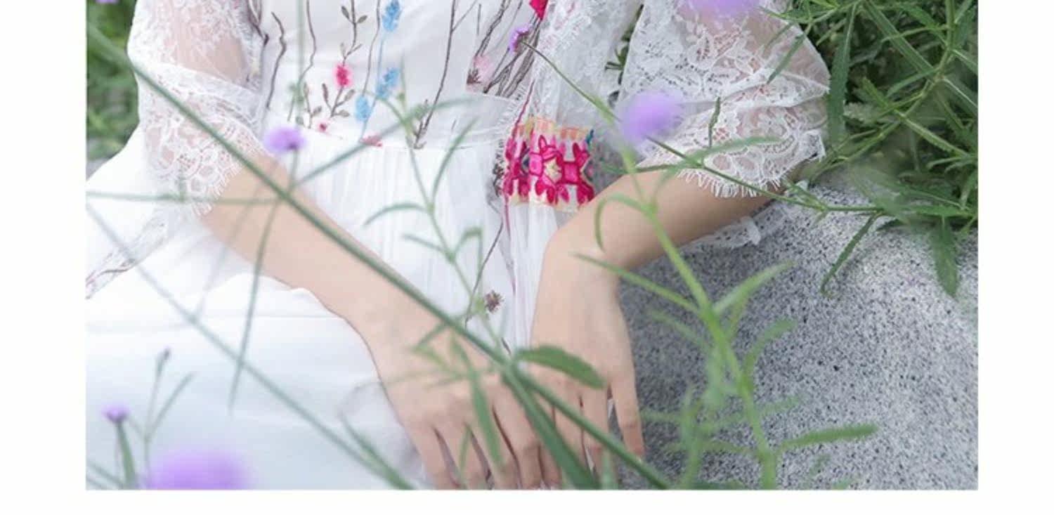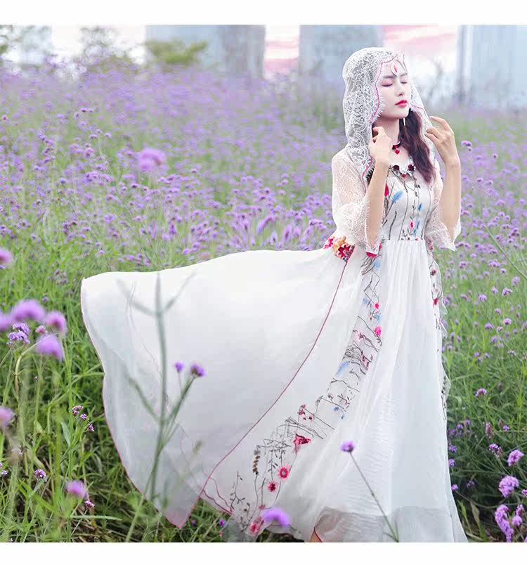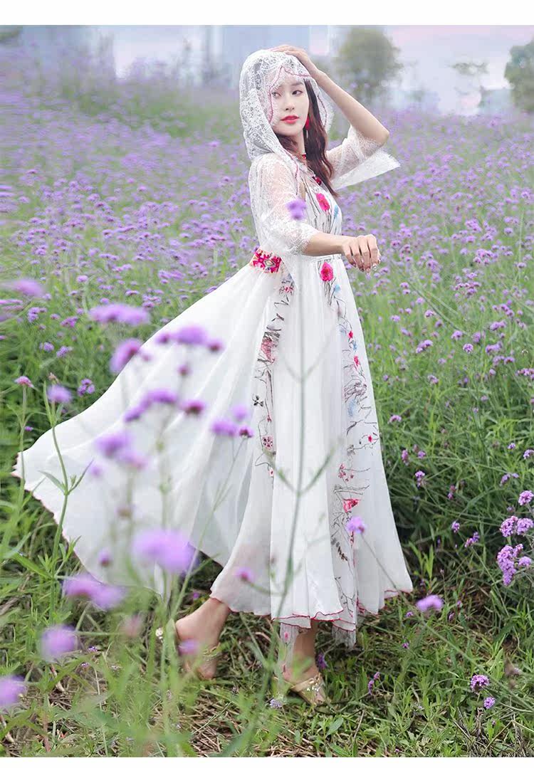 Ретро этническое длинное платье, этнический стиль, средней длины, с вышивкой