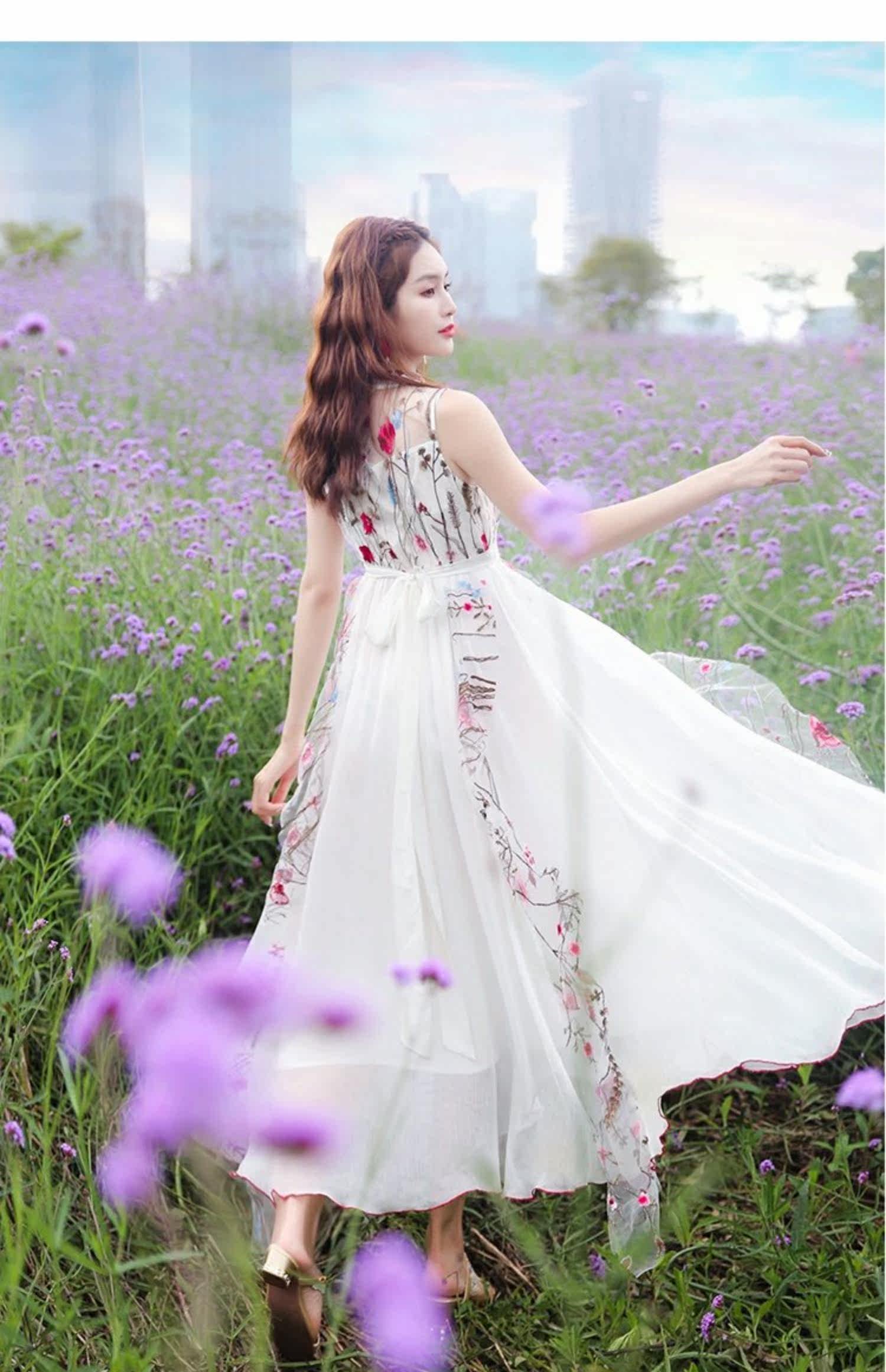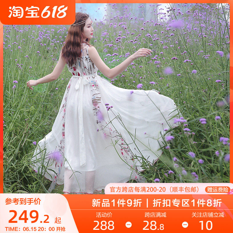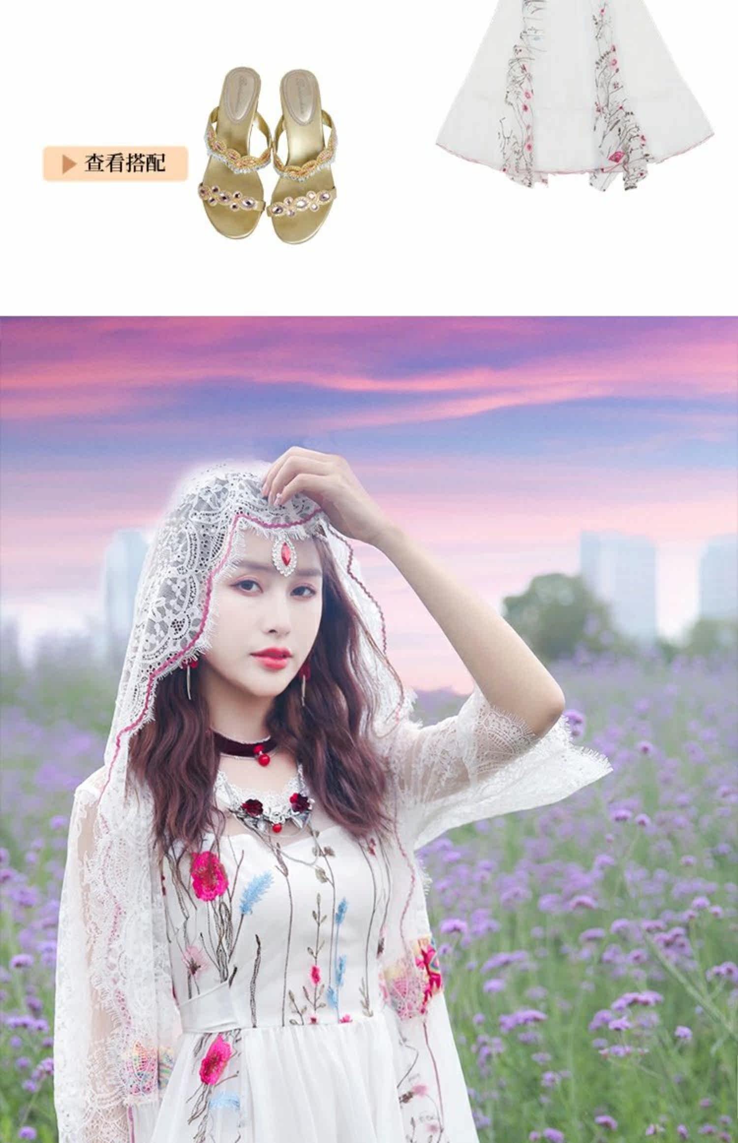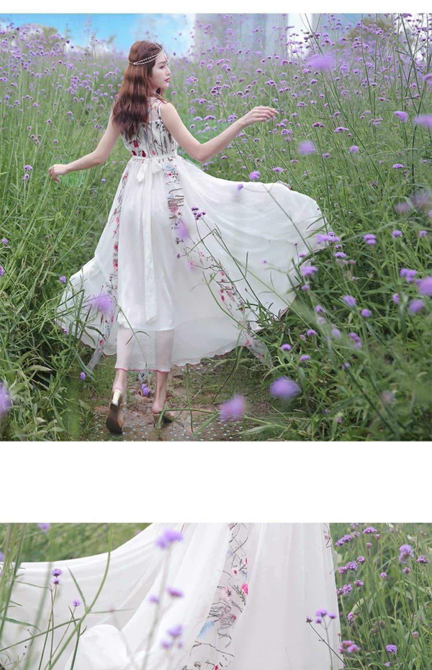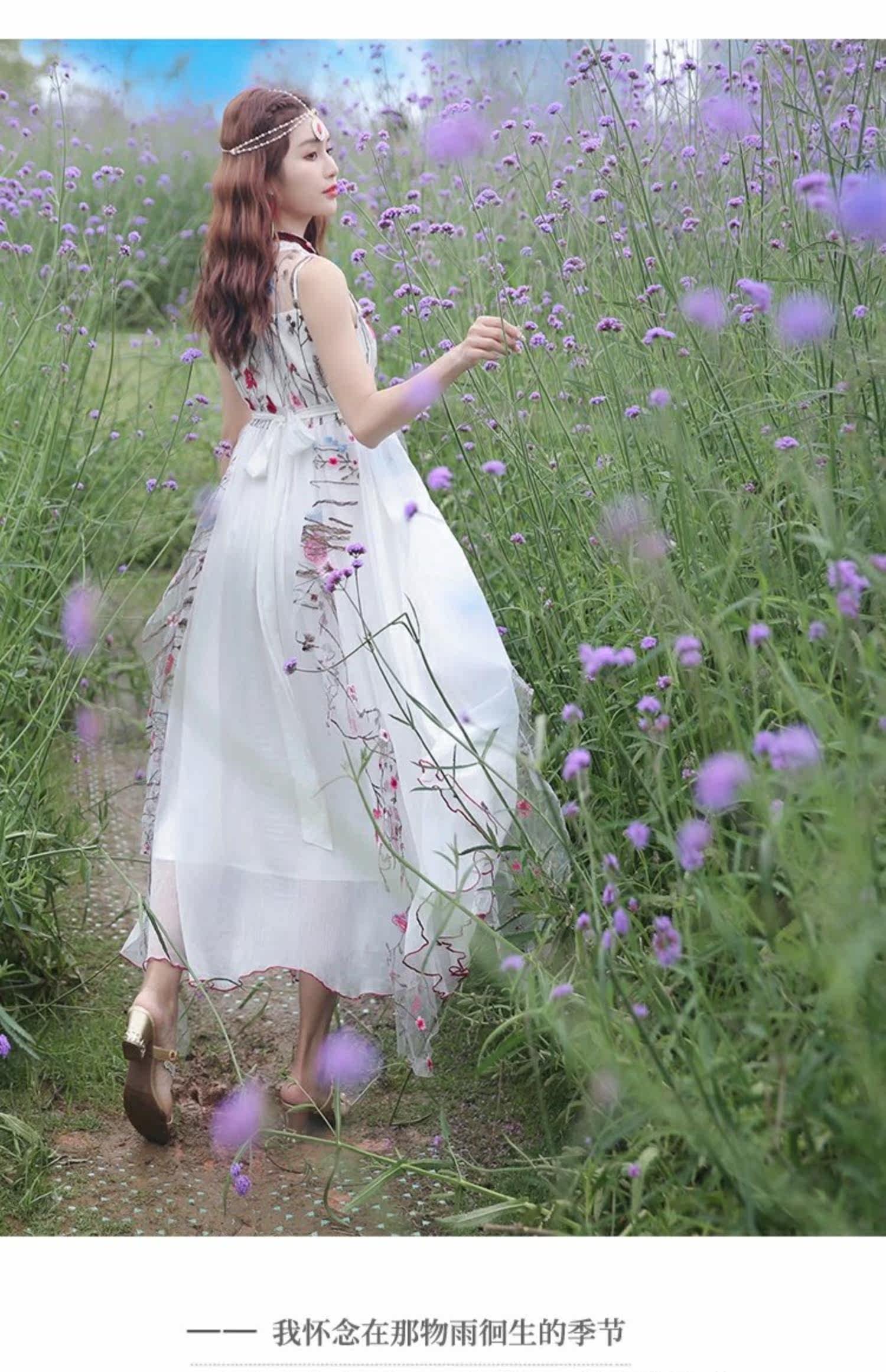 Ретро этническое длинное платье, этнический стиль, средней длины, с вышивкой