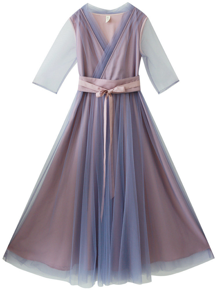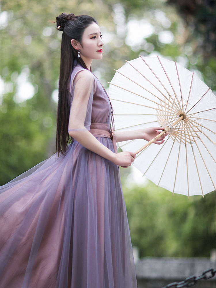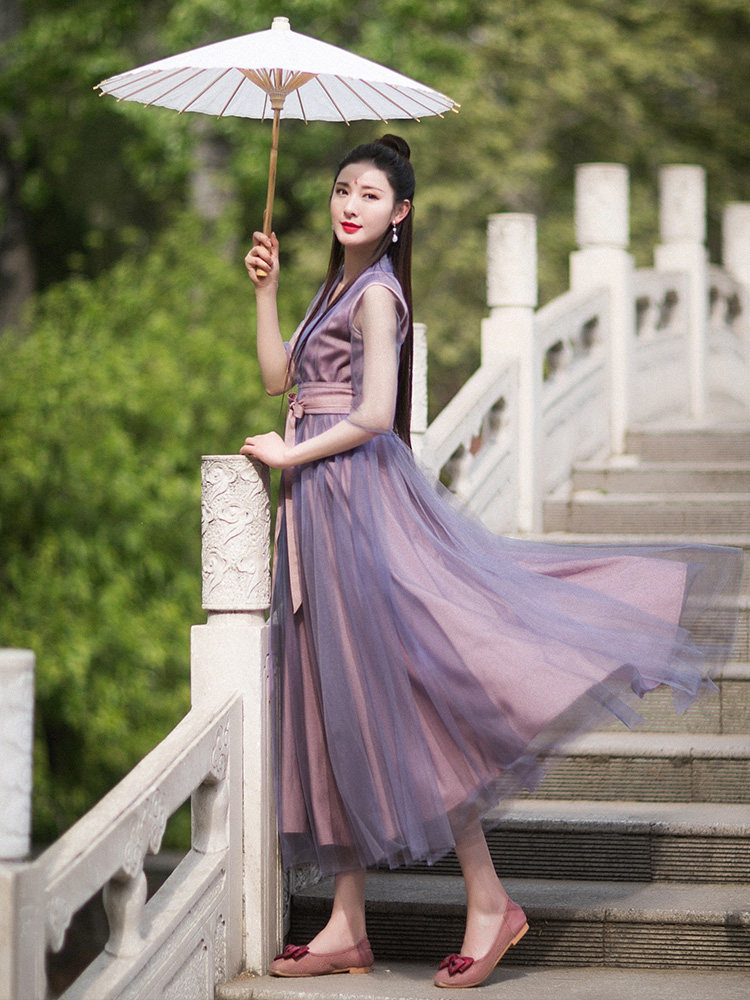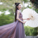 Летнее платье, ханьфу, сиреневая длинная юбка, из хлопка и льна, коллекция 2022, яркий броский стиль