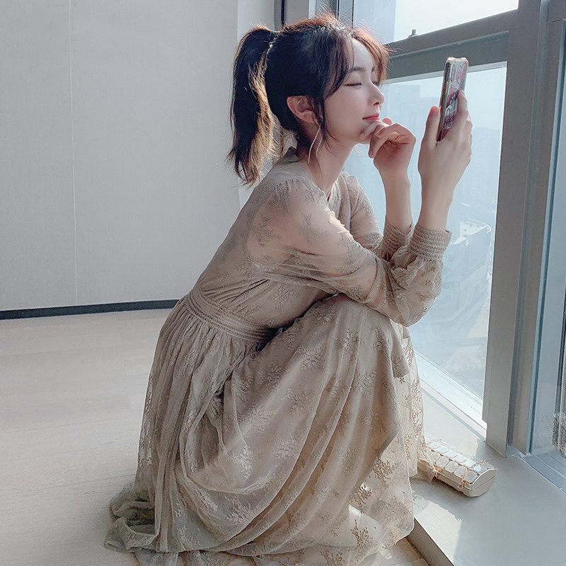 Шифоновое летнее платье, приталенный корсет, кружевной лонгслив, длинная юбка