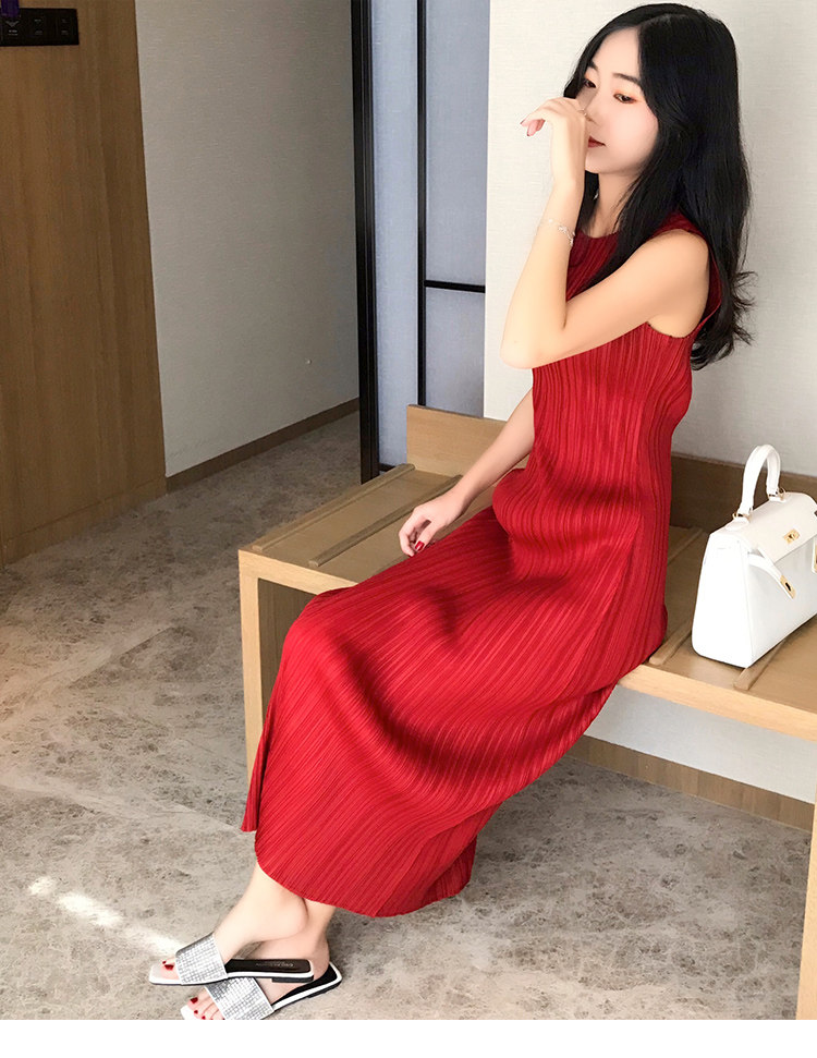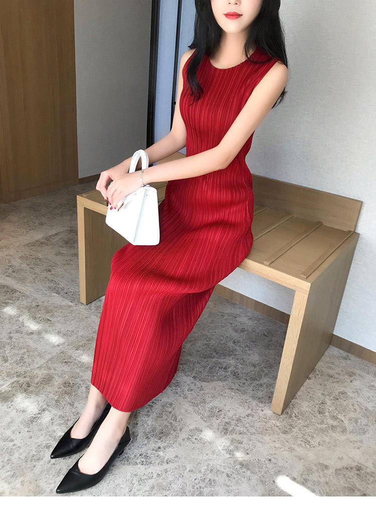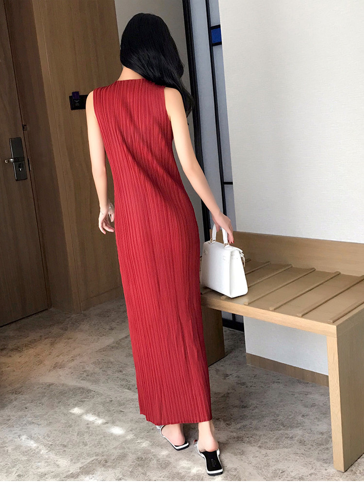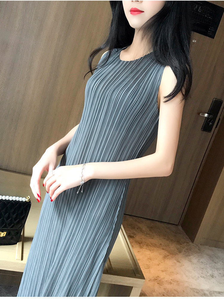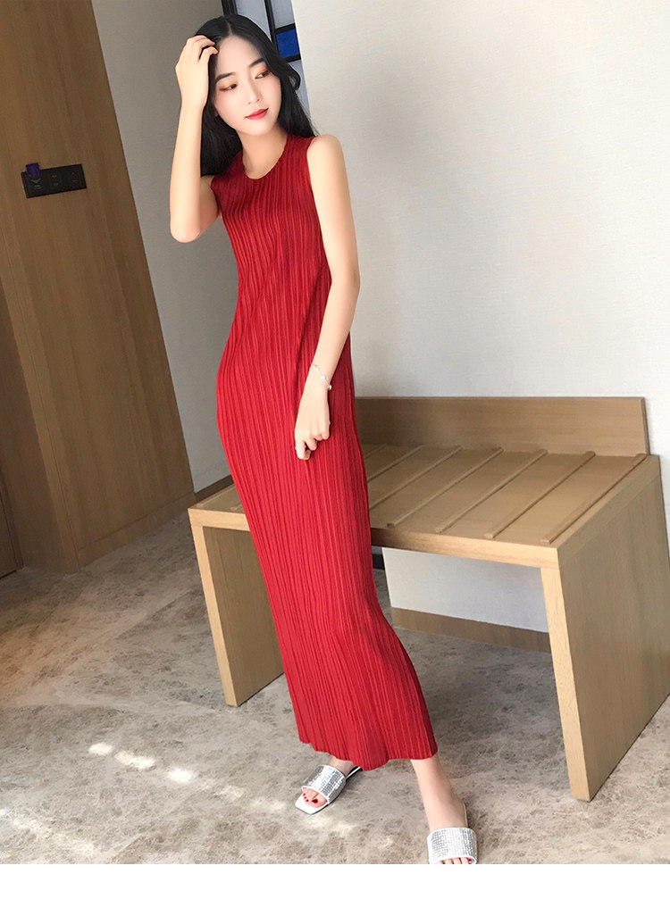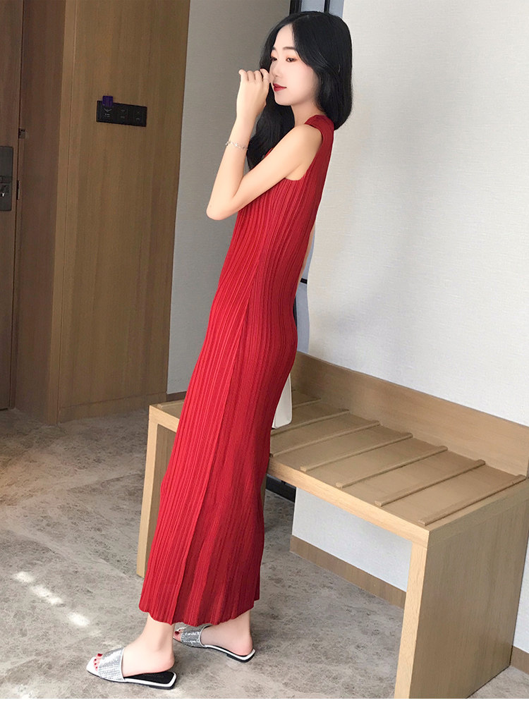 Платье, летняя длинная юбка без рукавов с круглым воротником, облегающий крой, свободный крой