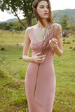 Розовое трикотажное платье, осеннее платье без рукавов без рукавов, элегантная юбка, эффект подтяжки, облегающий крой, коллекция 2021, яркий броский стиль, с акцентом на бедрах