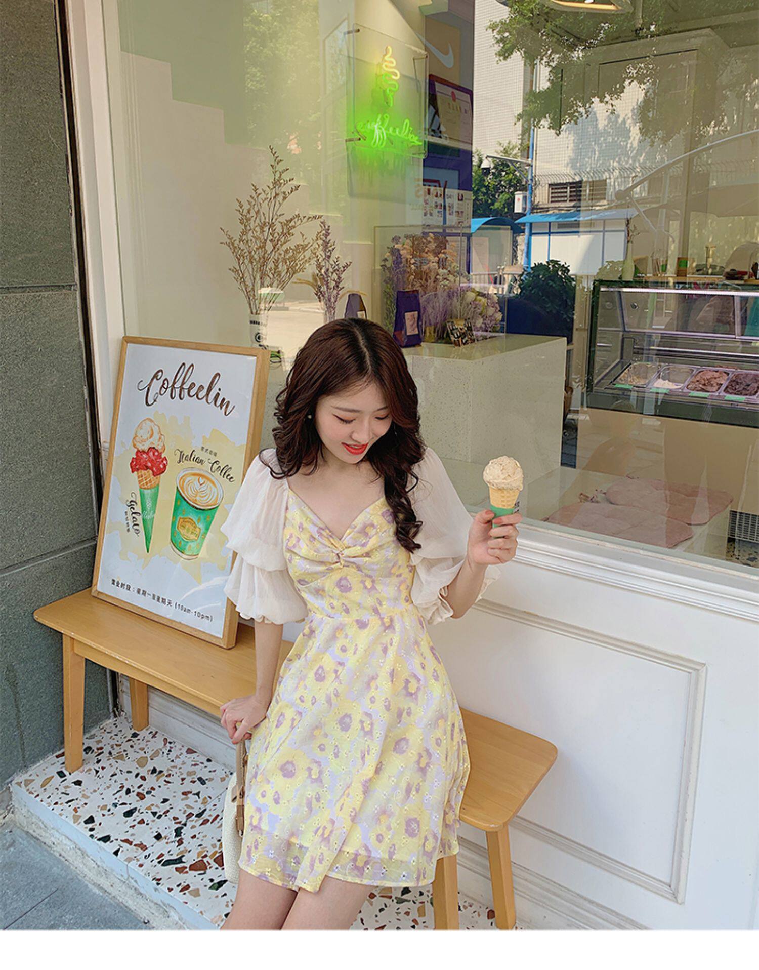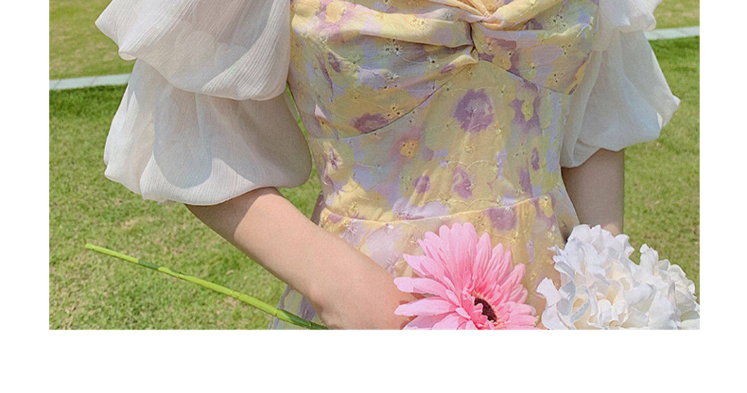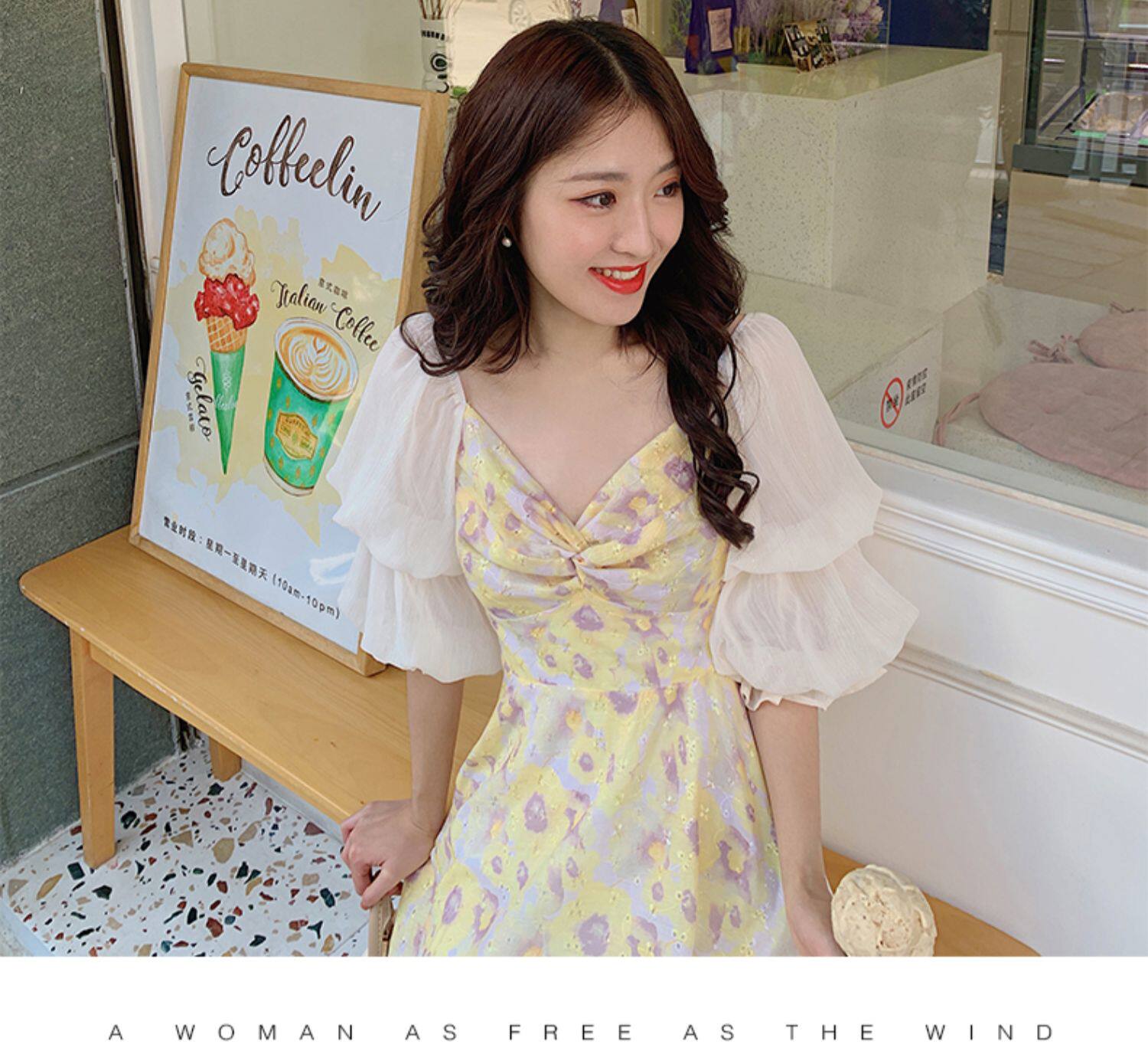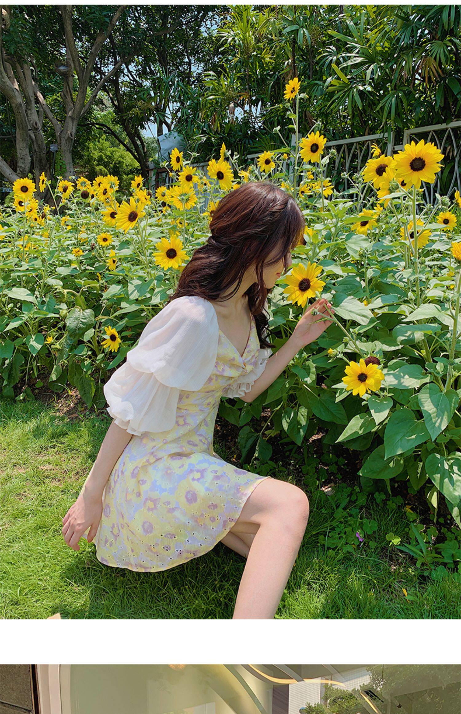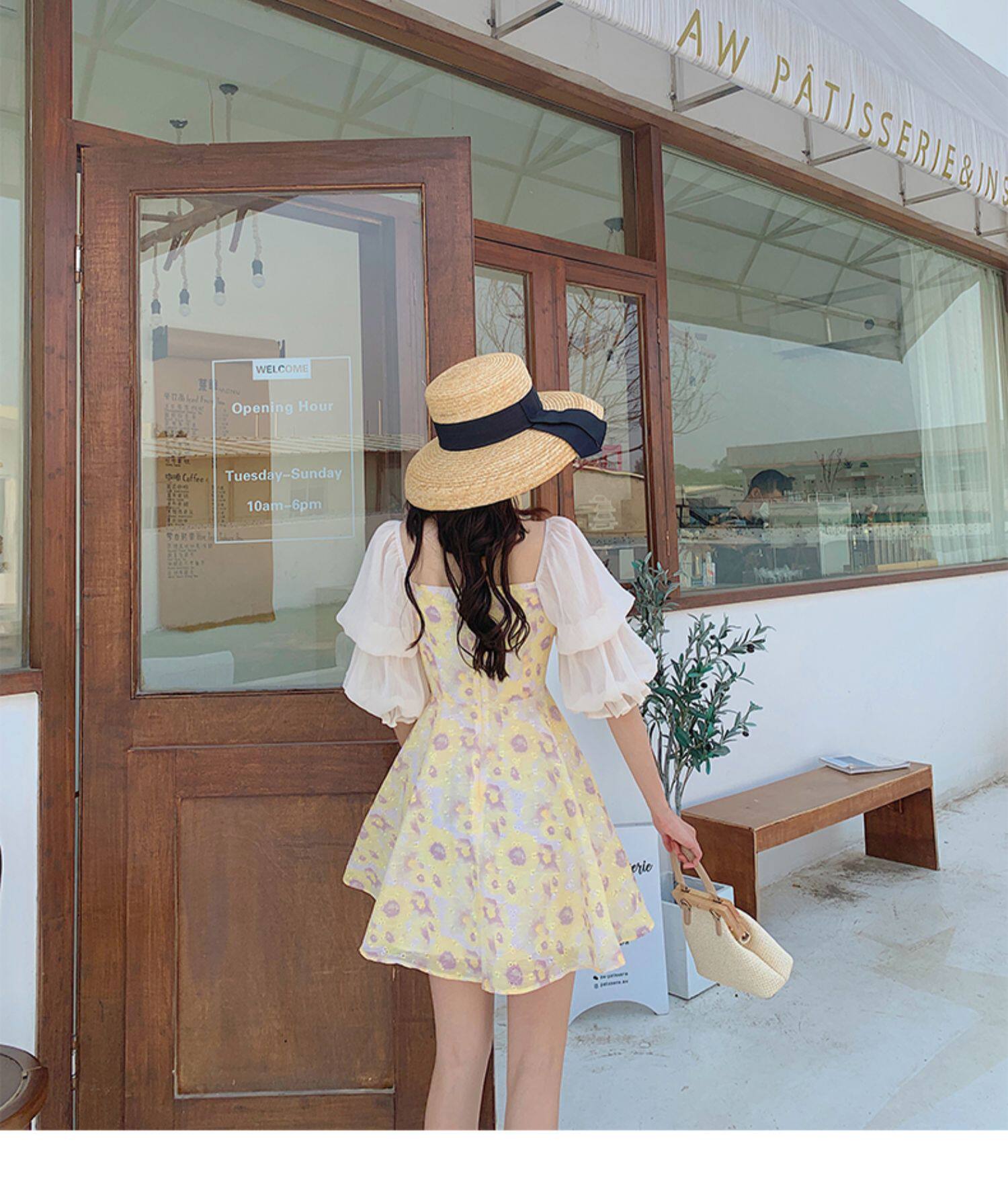 Летняя сексуальная юбка, приталенный желтый корсет, платье, квадратный вырез, в цветочек