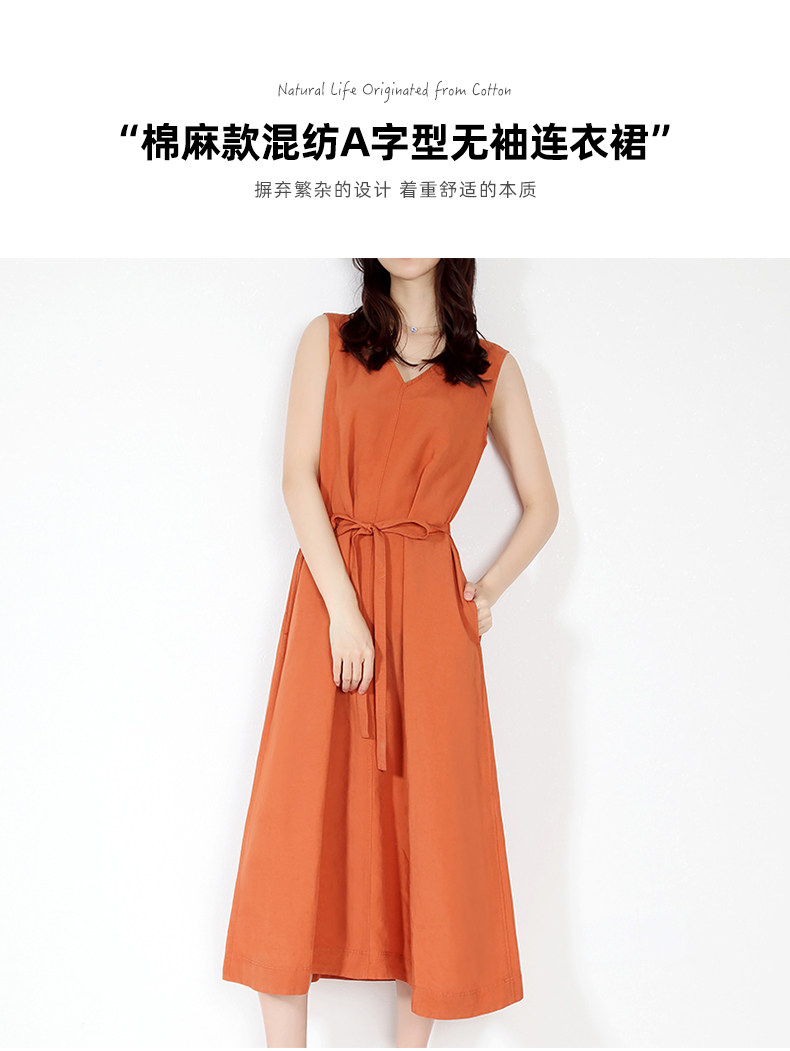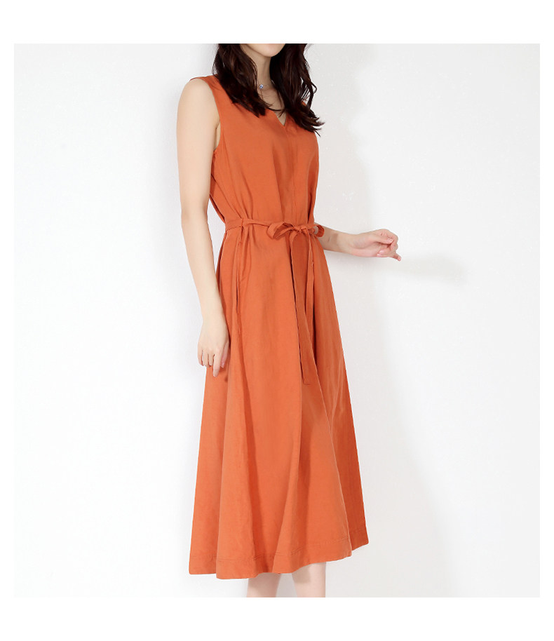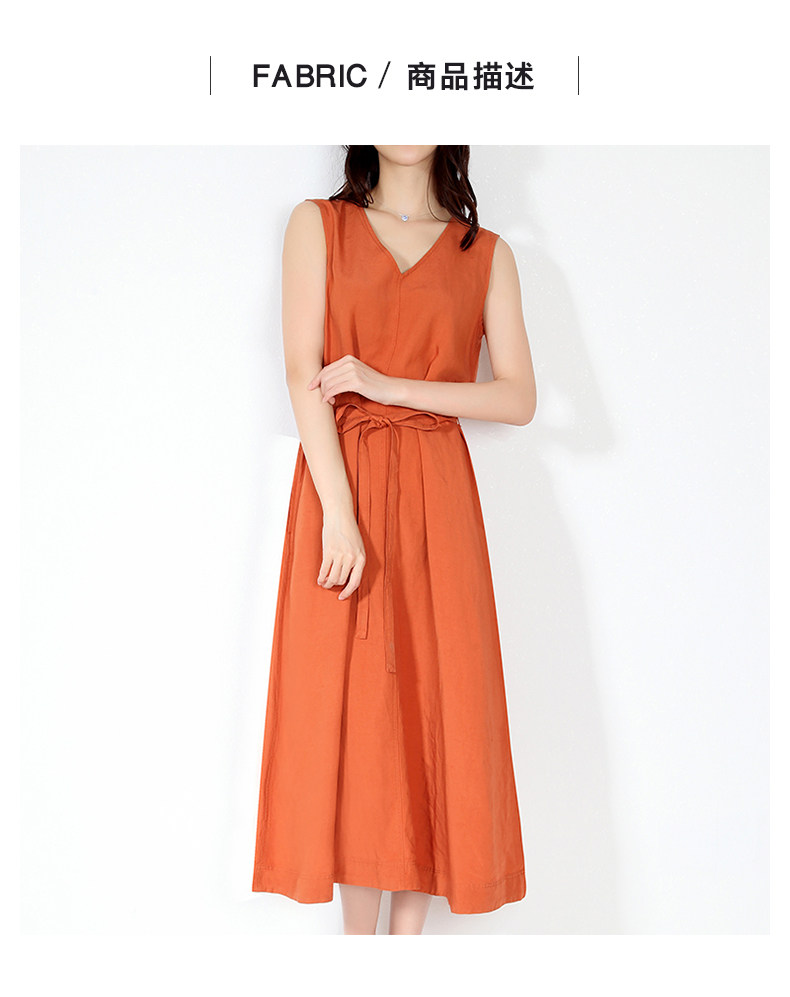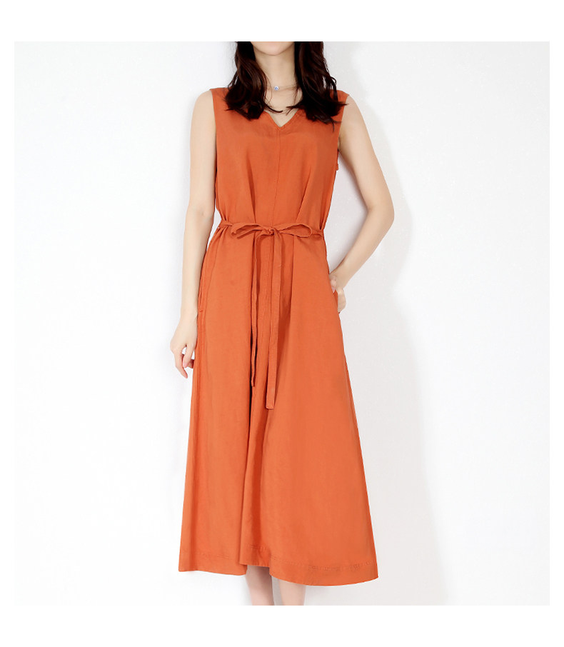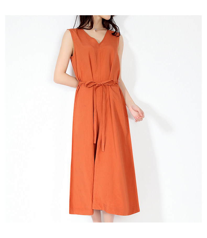 Платье, тонкая длинная юбка для отдыха без рукавов, из хлопка и льна, оверсайз, V-образный вырез, А-силуэт, средней длины, городской стиль
