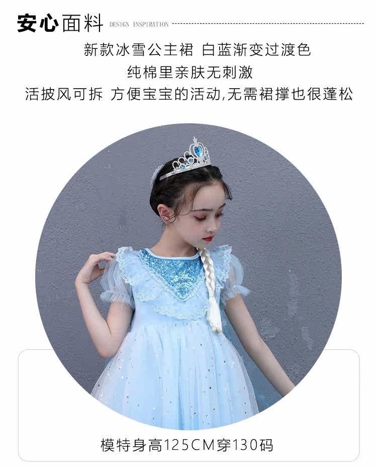 Наряд маленькой принцессы, платье с коротким рукавом, юбка на девочку, «Холодное сердце»