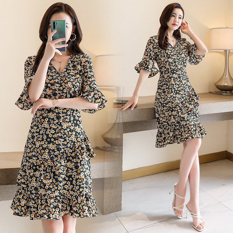 Шифоновое платье, милая юбка, в цветочек, подходит для подростков, 2020, французский стиль