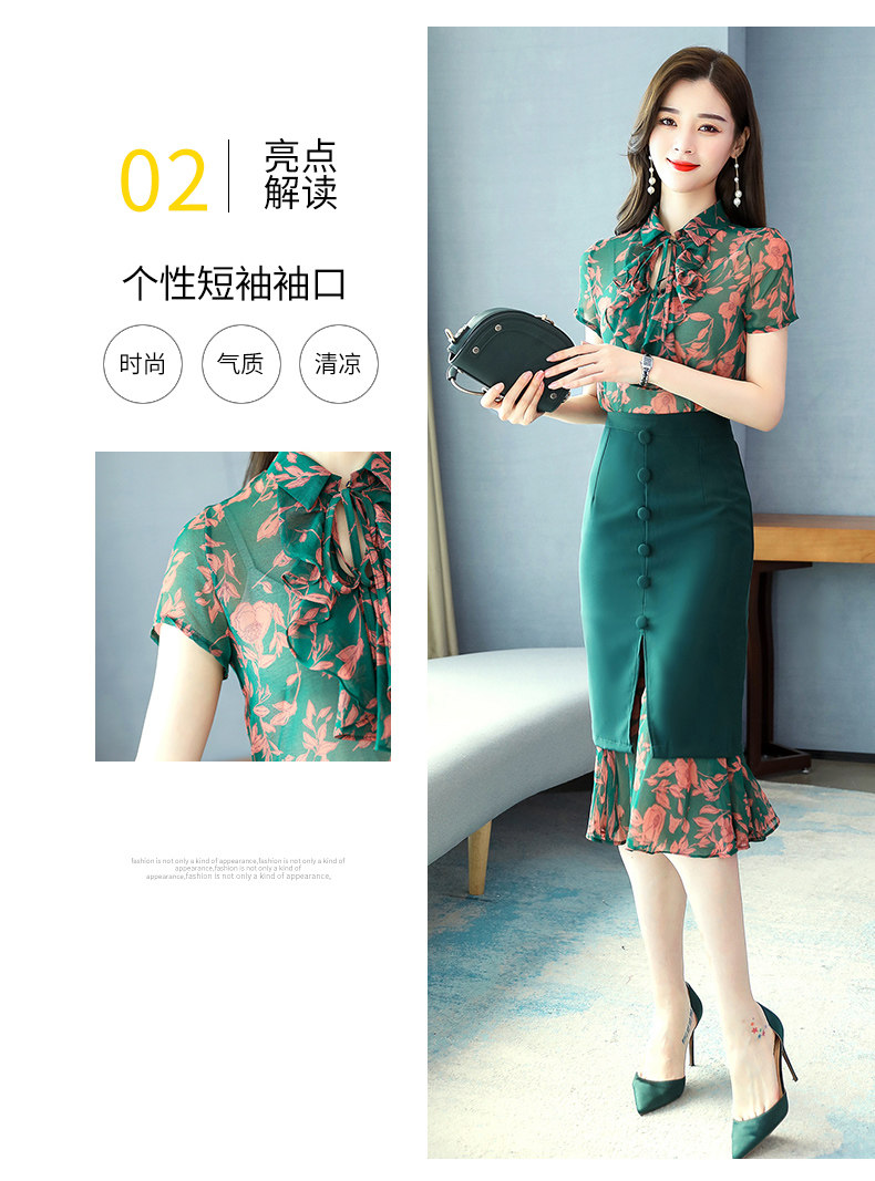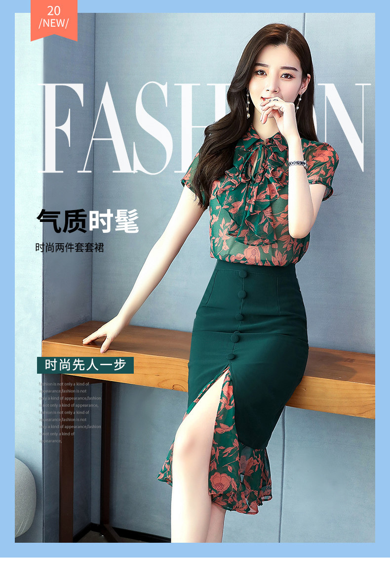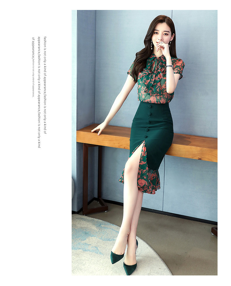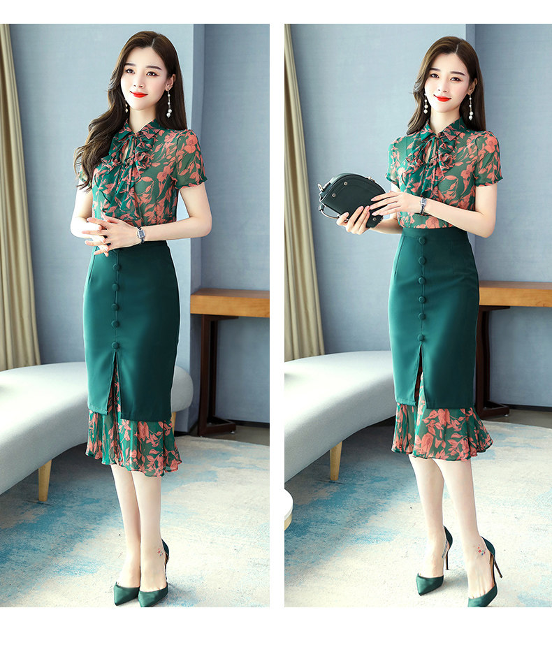 Комплект, летняя юбка, зеленое платье с бантиком, в западном стиле, коллекция 2023, городской стиль, изысканный стиль, цветочный принт
