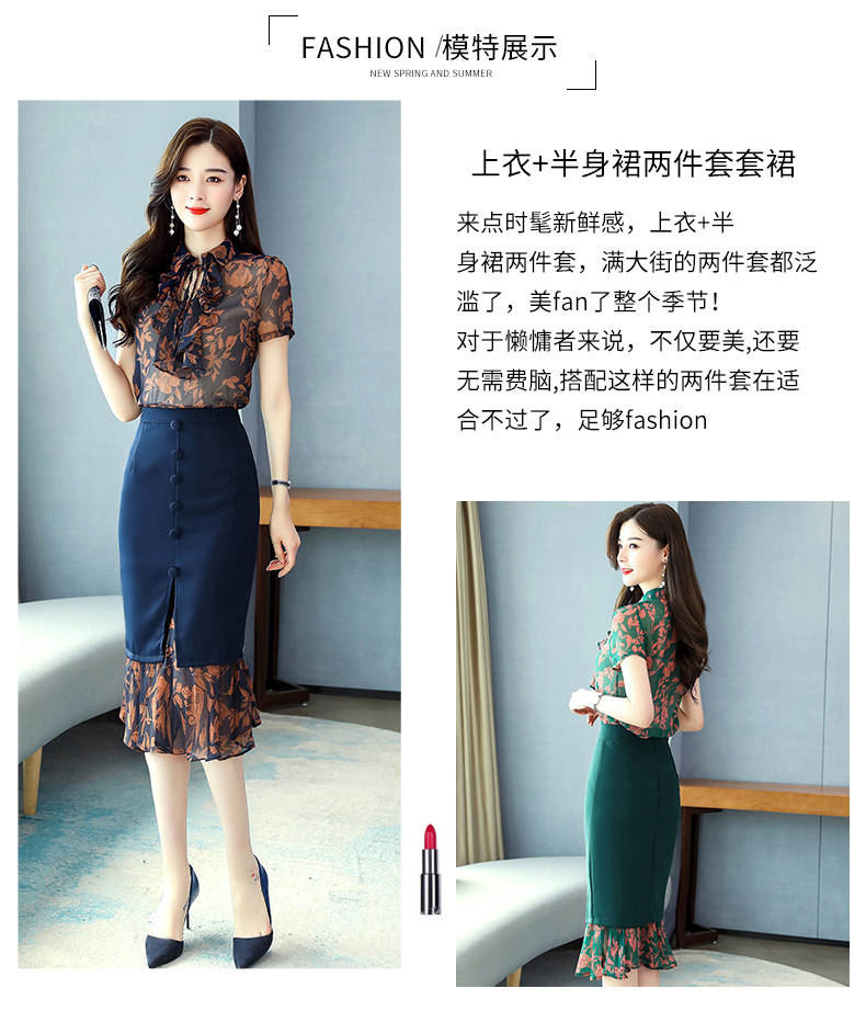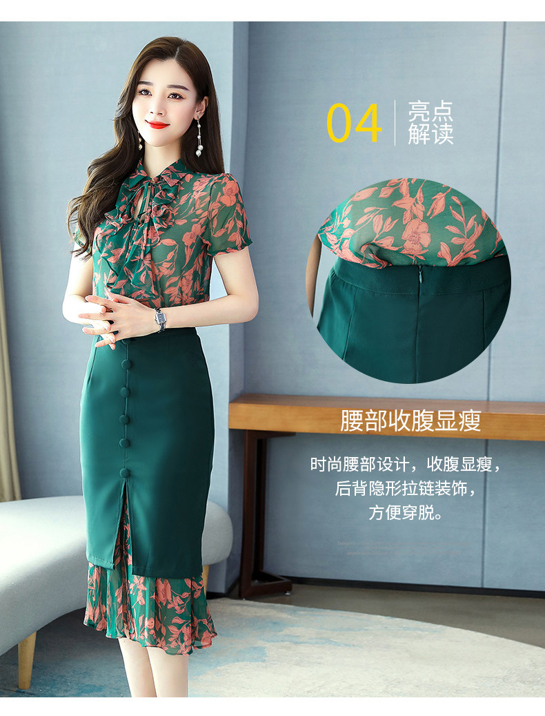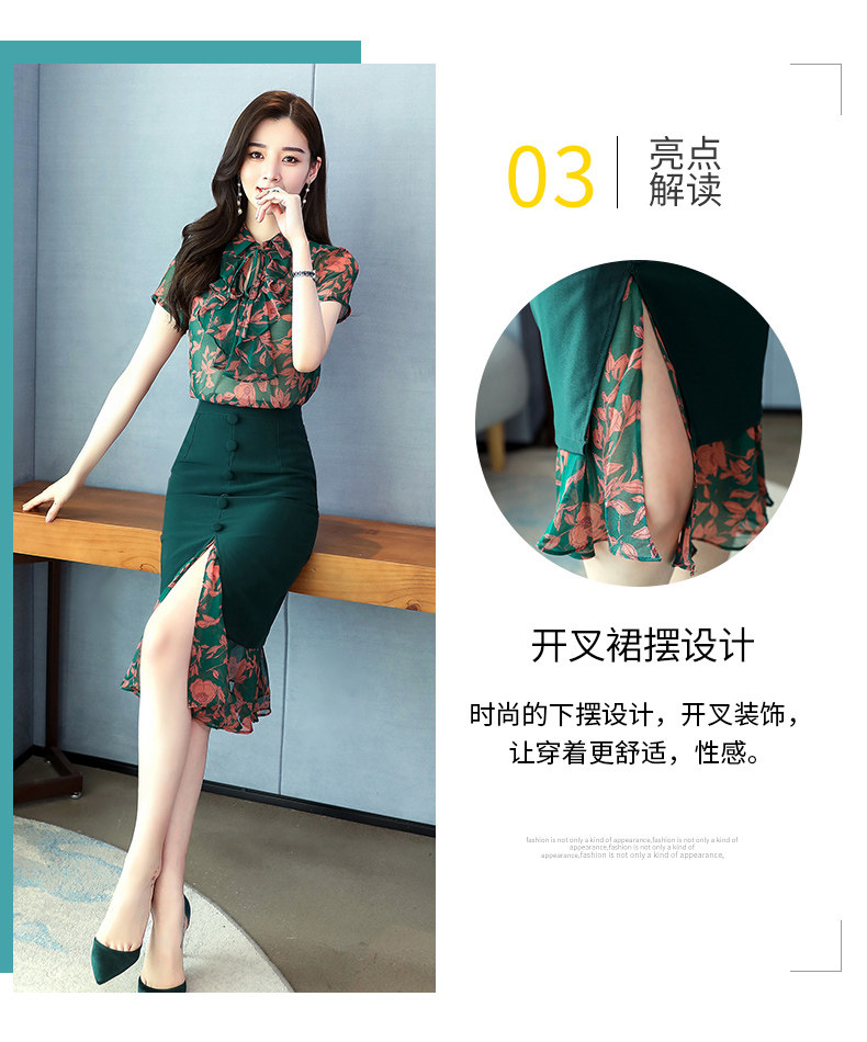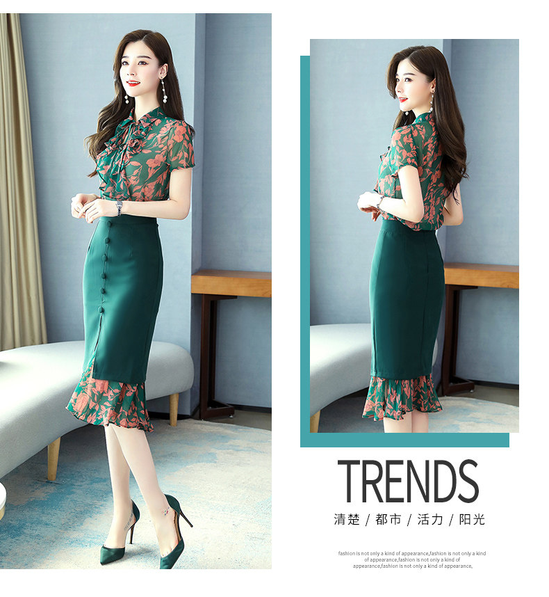 Комплект, летняя юбка, зеленое платье с бантиком, в западном стиле, коллекция 2023, городской стиль, изысканный стиль, цветочный принт