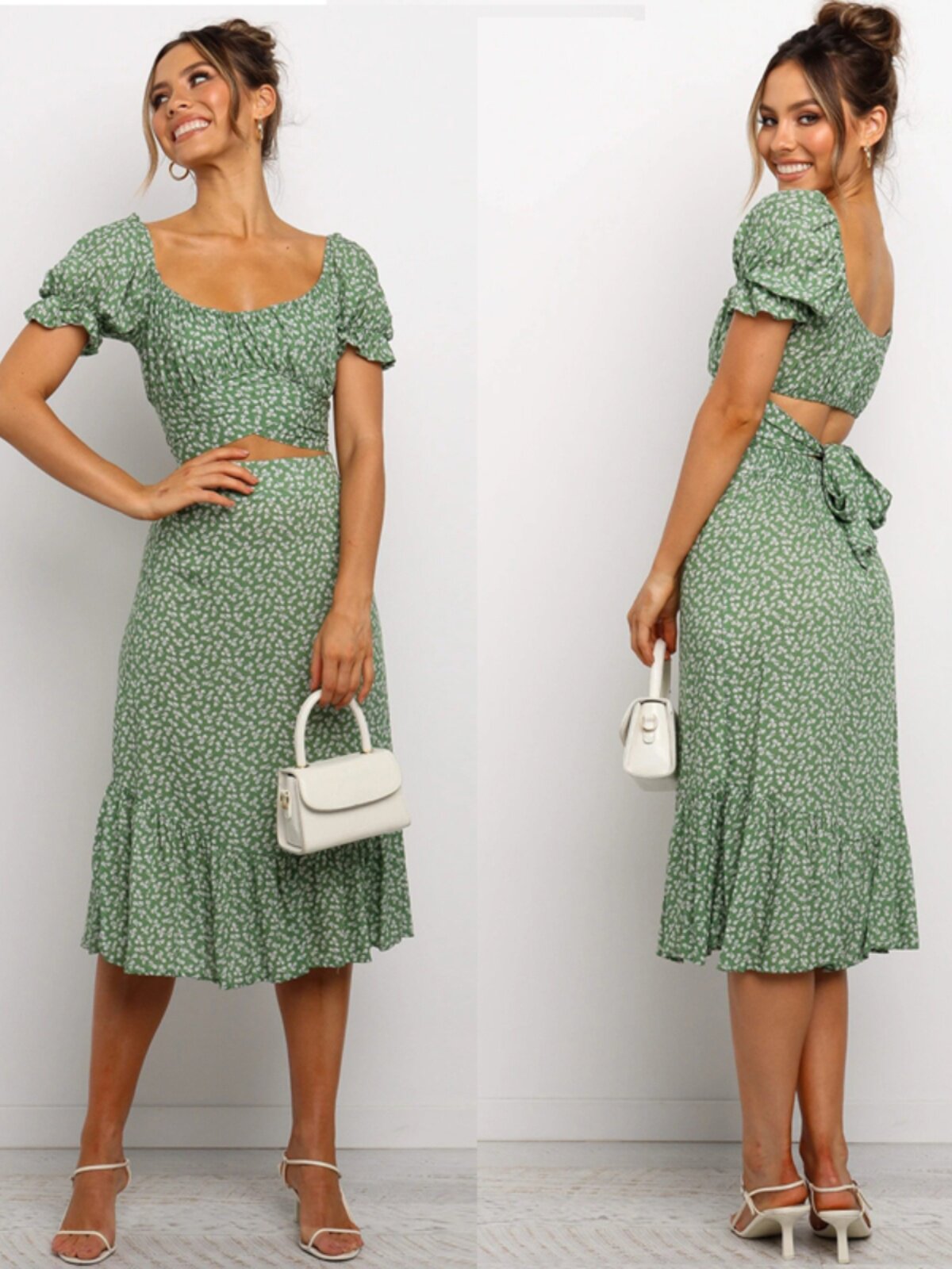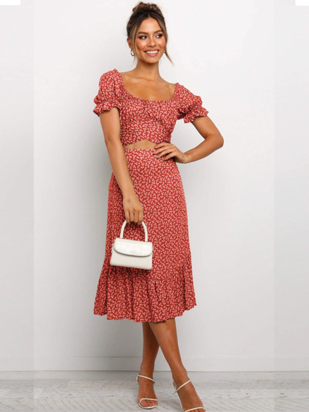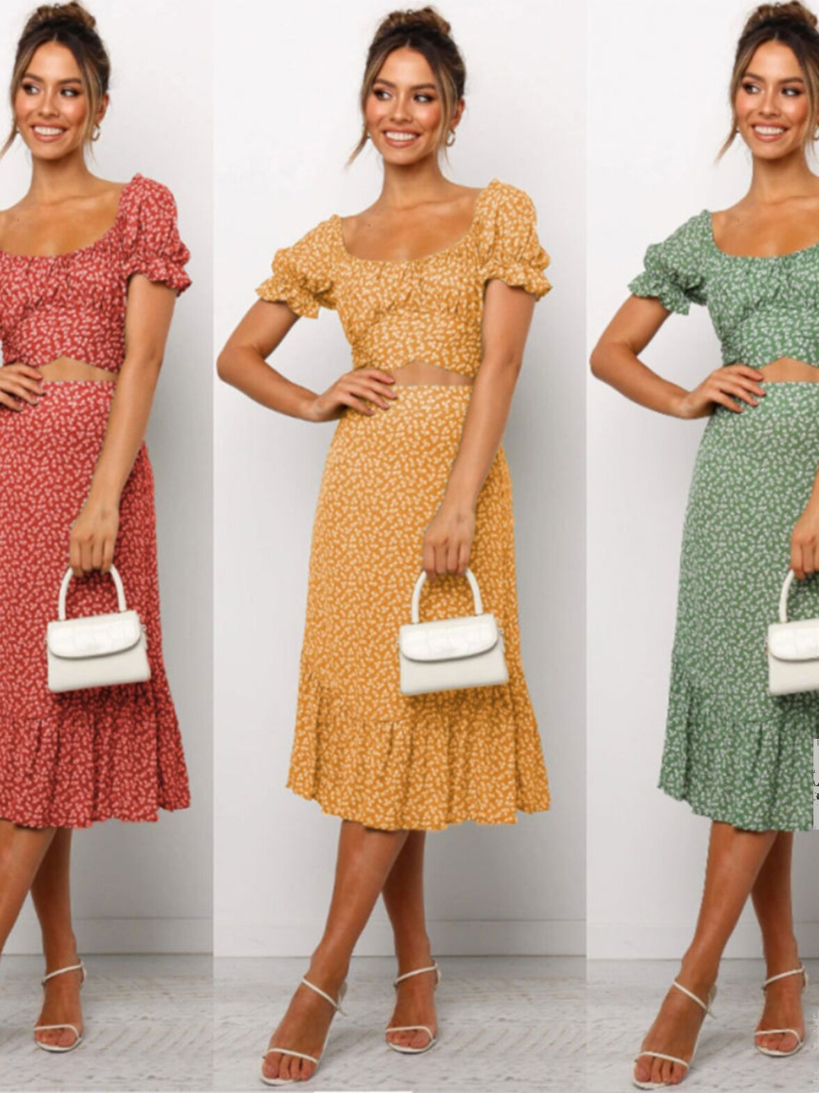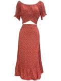 Корсет, длинная юбка, комплект, платье с коротким рукавом, европейский стиль, цветочный принт, высокая талия, средней длины