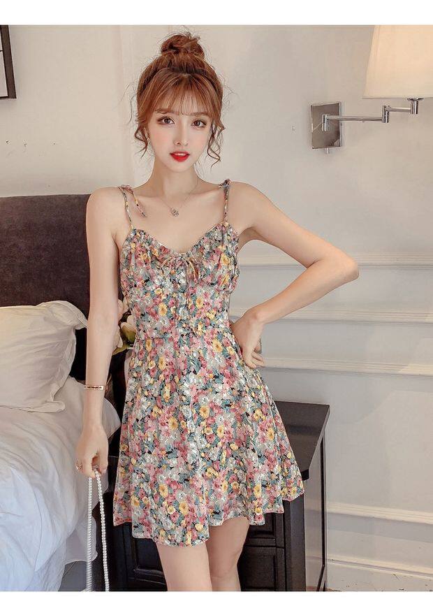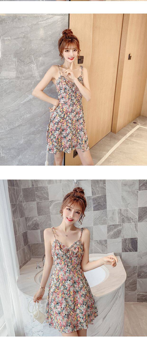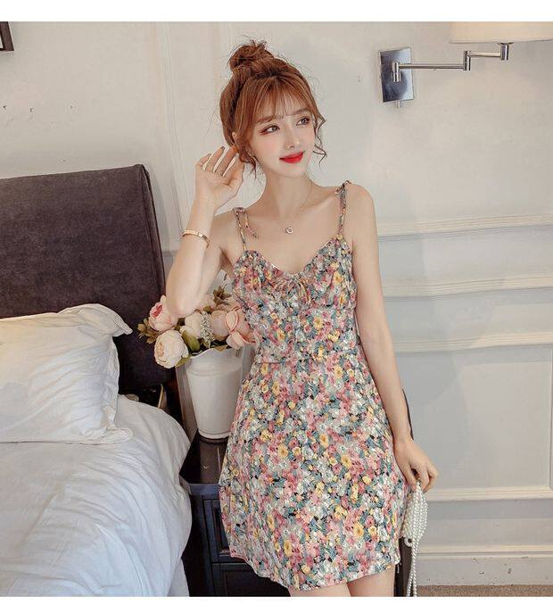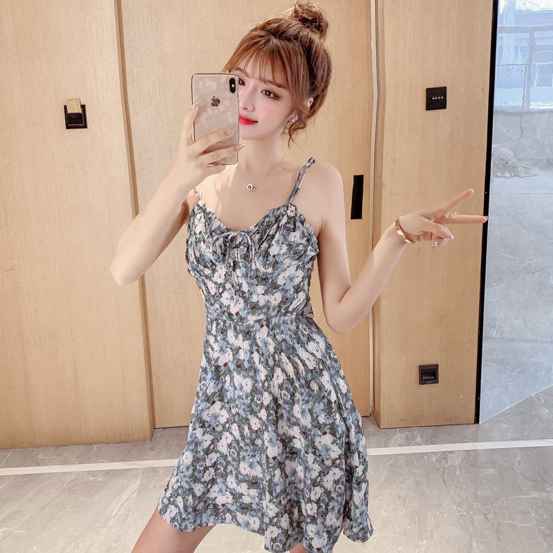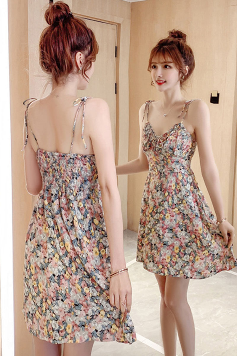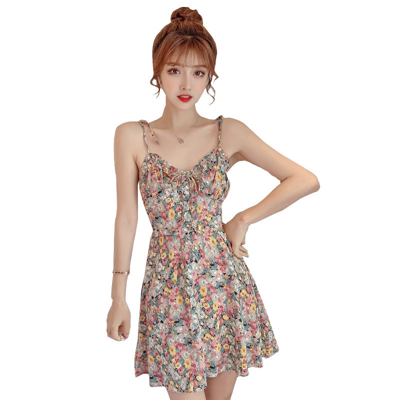 Миниатюрное и короткое летнее женское платье XS высотой 150 см 155 с дырявой спиной, сексуальное платье на подтяжках, юбка супер феи с цветочным принтом