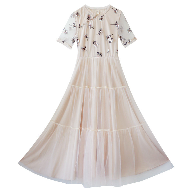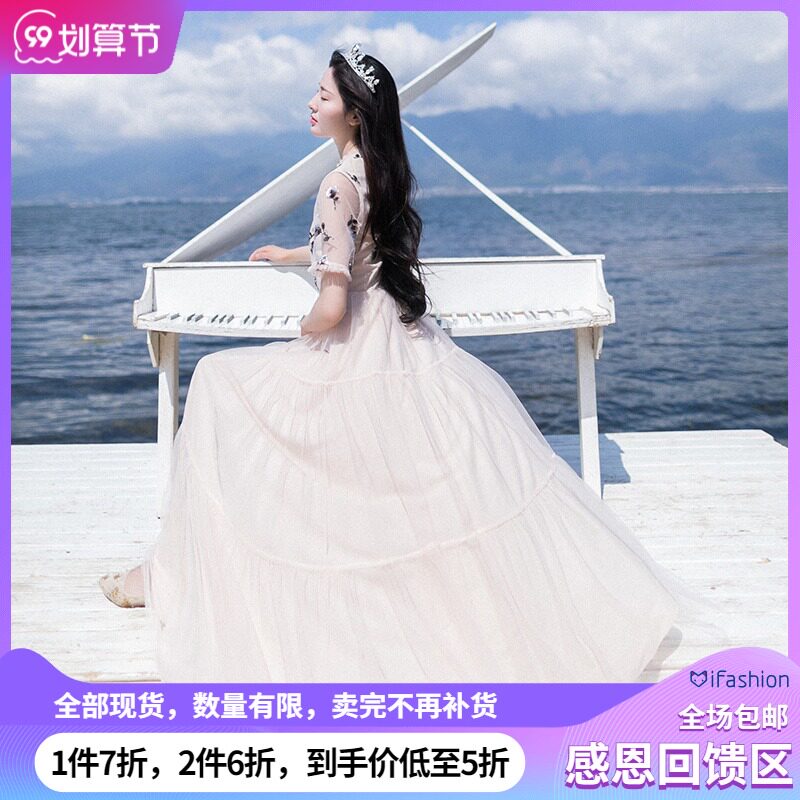Ретро длинная юбка, пляжное платье, из хлопка и льна, с вышивкой, коллекция 2021, из фатина