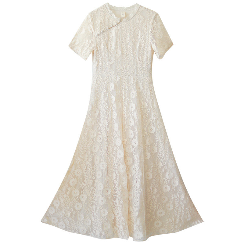Ретро кружевное ципао, летнее платье, длинная юбка, (в наличии на складе), облегающий крой, высокая талия, цветочный принт