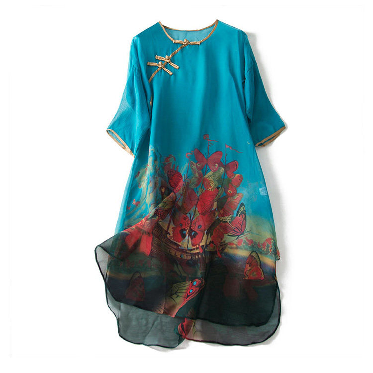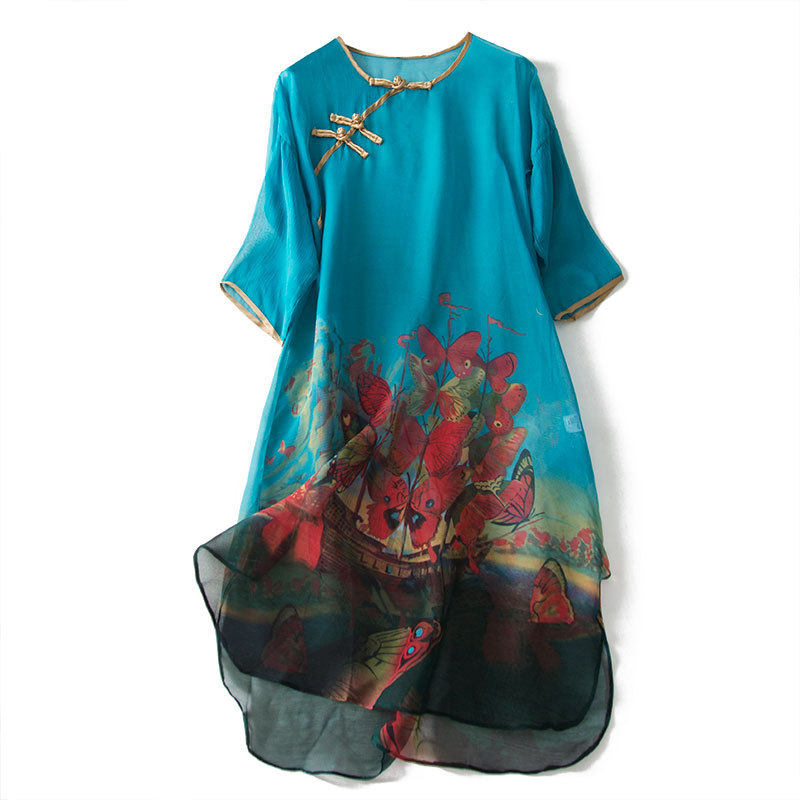 Демисезонное ретро ципао, шелковое платье, коллекция 2021