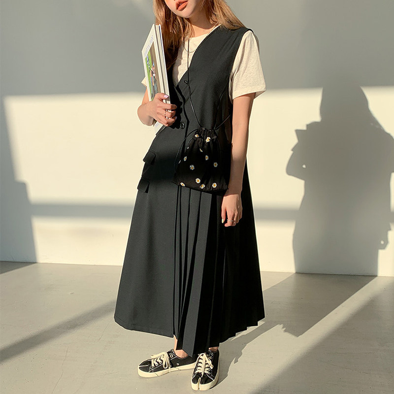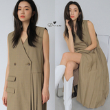 Дизайнерское платье с рукавами без рукавов, в корейском стиле, V-образный вырез, свободный крой