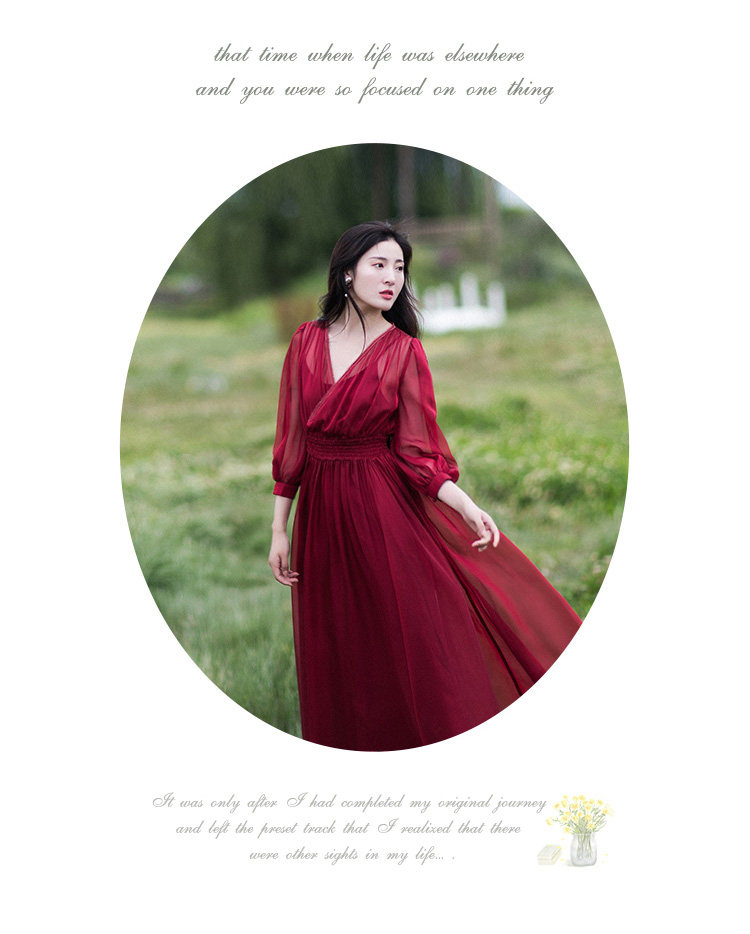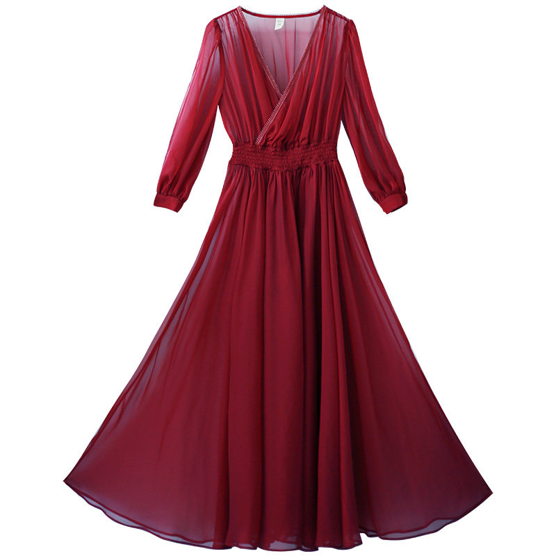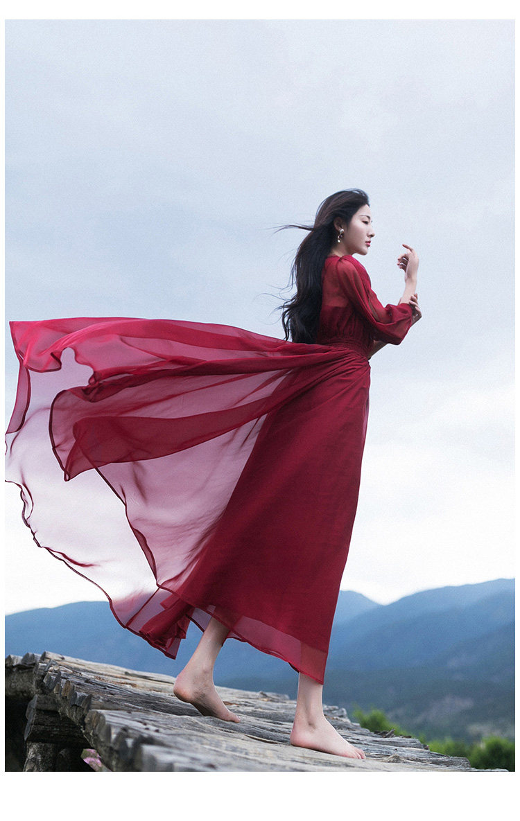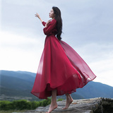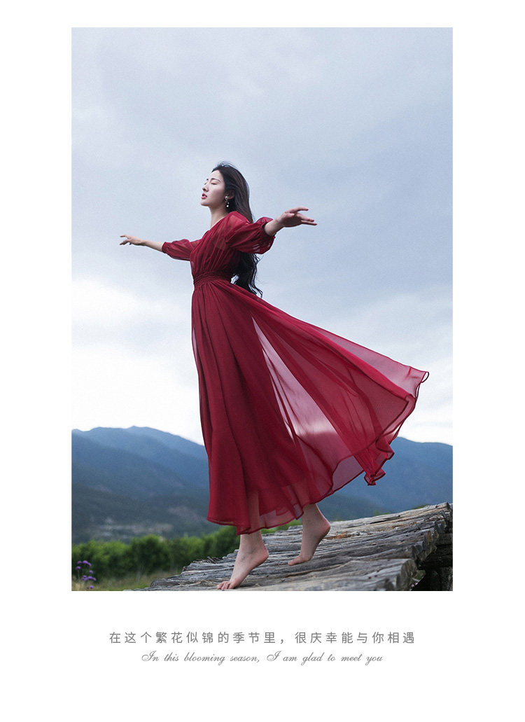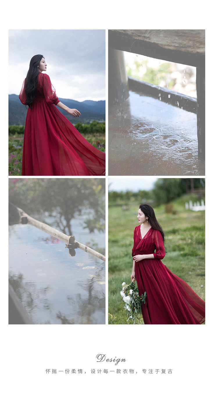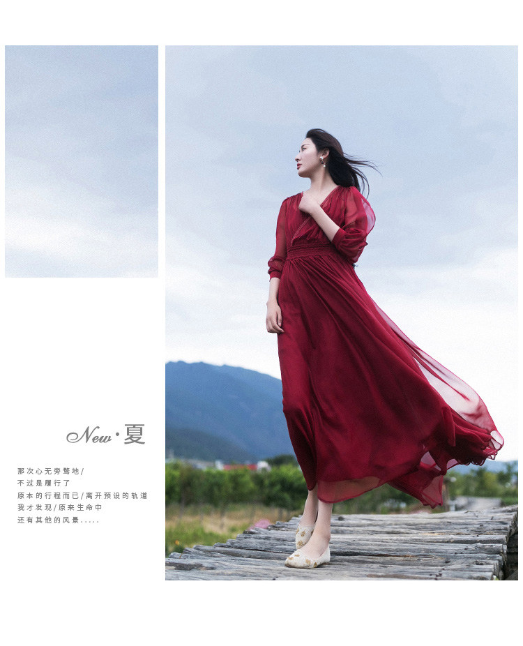 Ретро шифоновое летнее красное платье, приталенная длинная юбка, корсет, из хлопка и льна, V-образный вырез