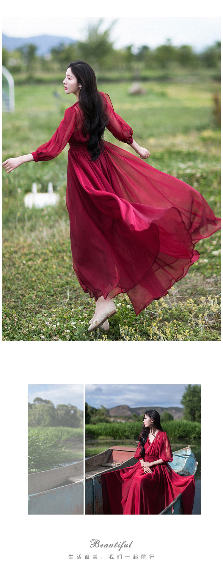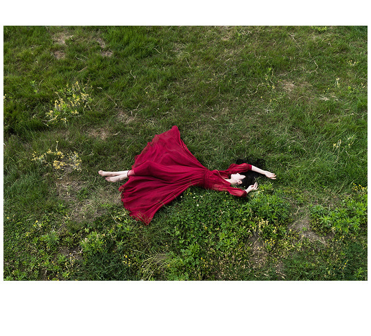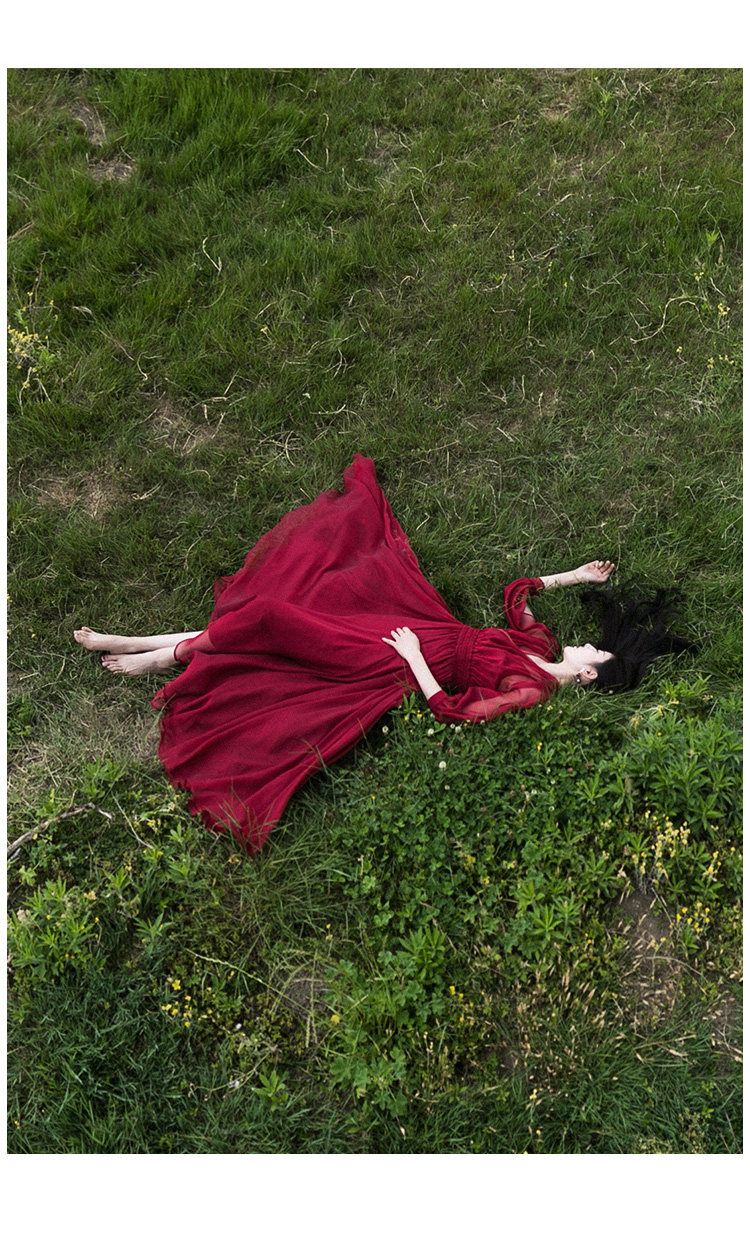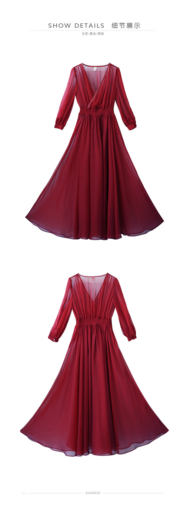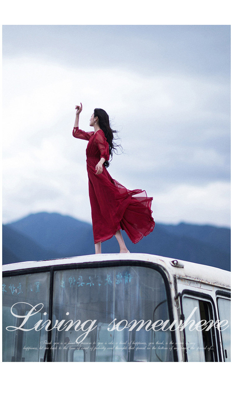 Ретро шифоновое летнее красное платье, приталенная длинная юбка, корсет, из хлопка и льна, V-образный вырез