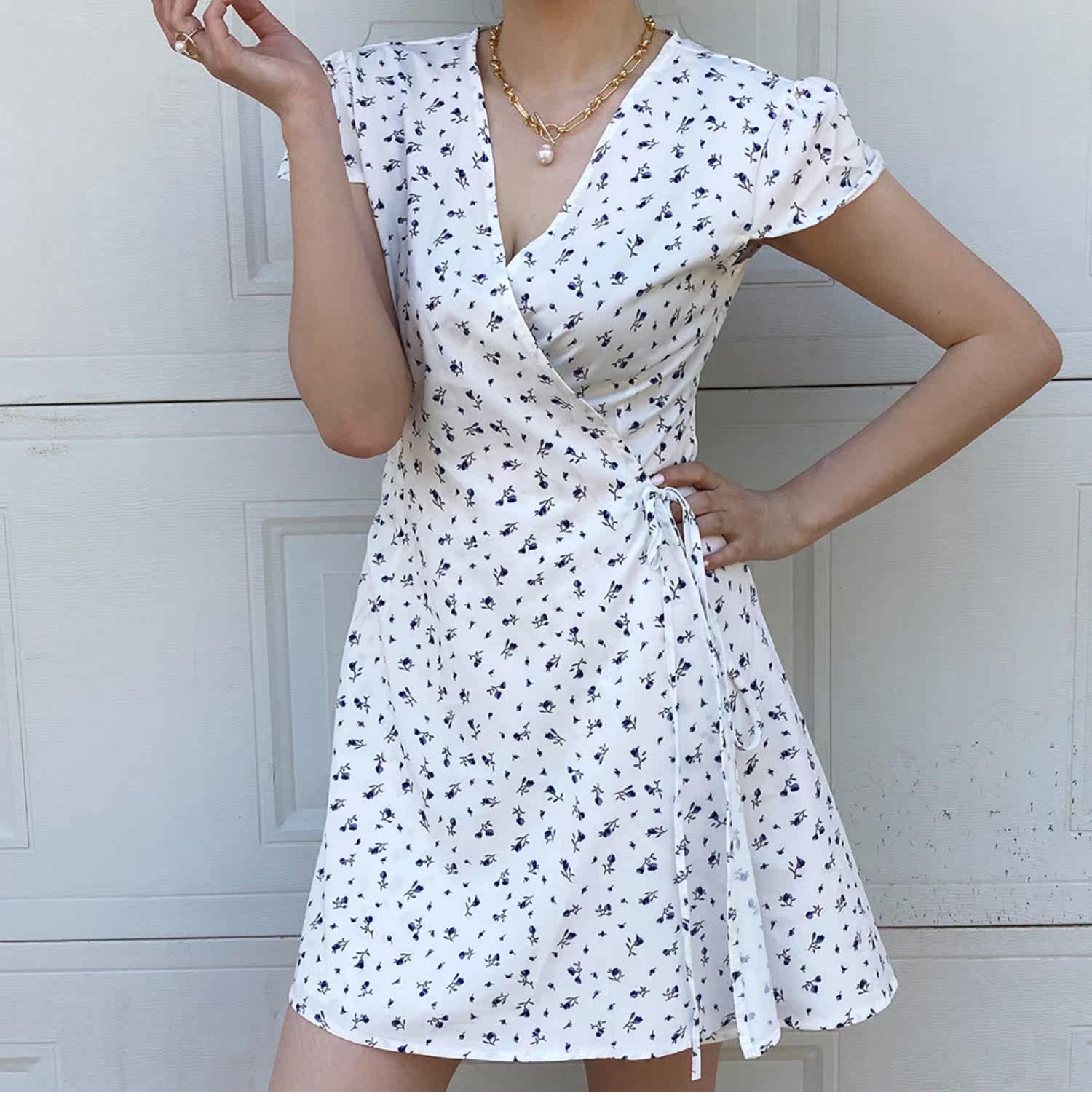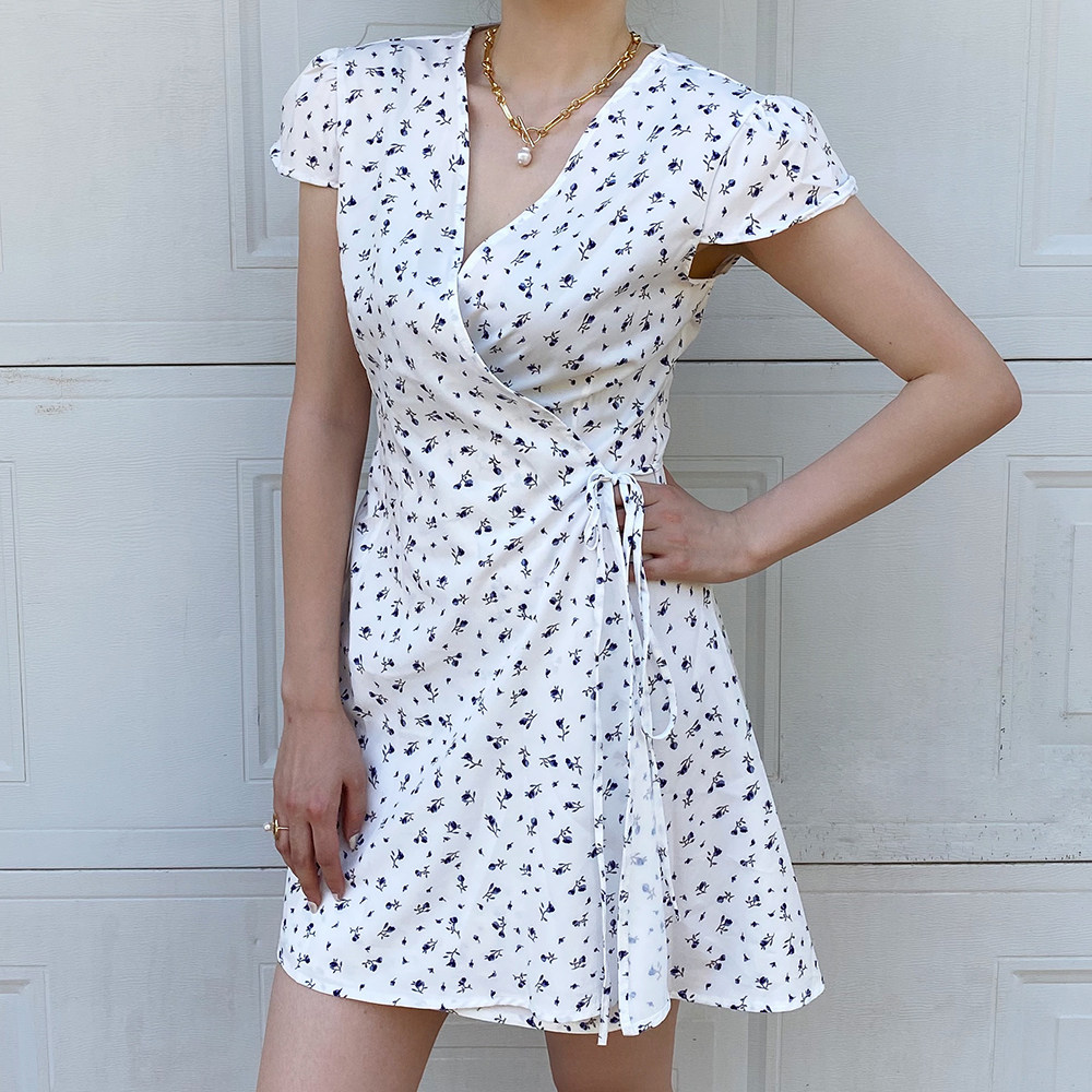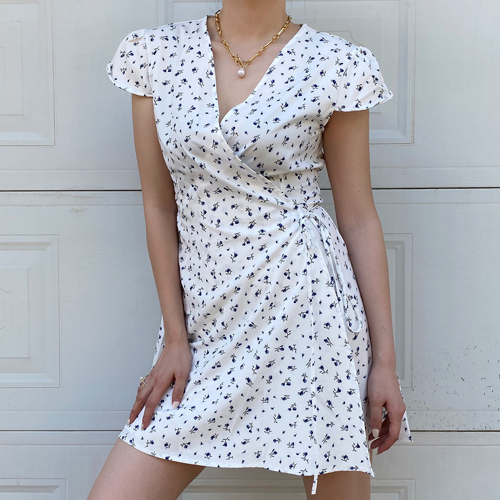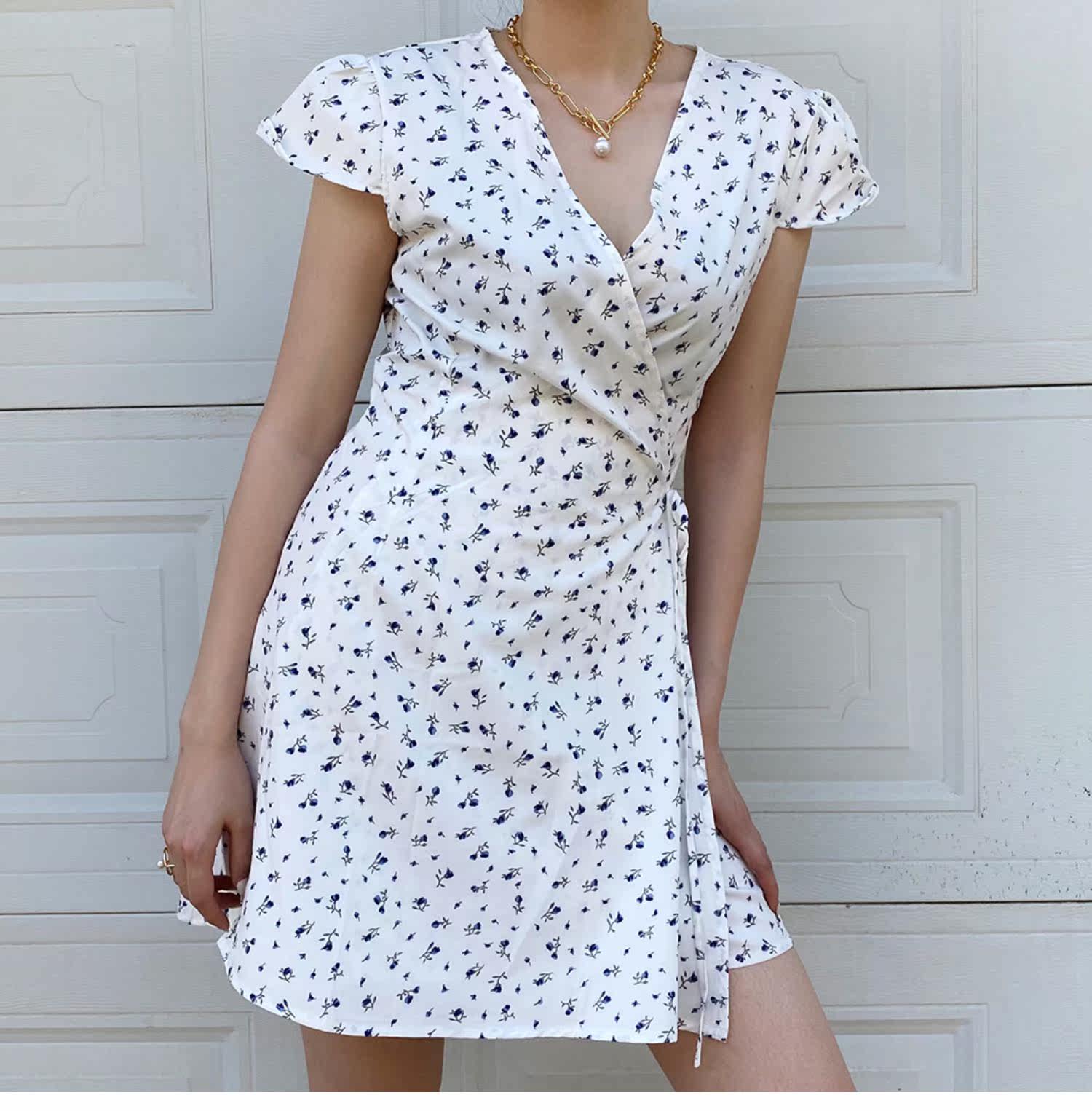 Ретро приталенное платье, юбка, мини-юбка, французский стиль, цветочный принт, V-образный вырез