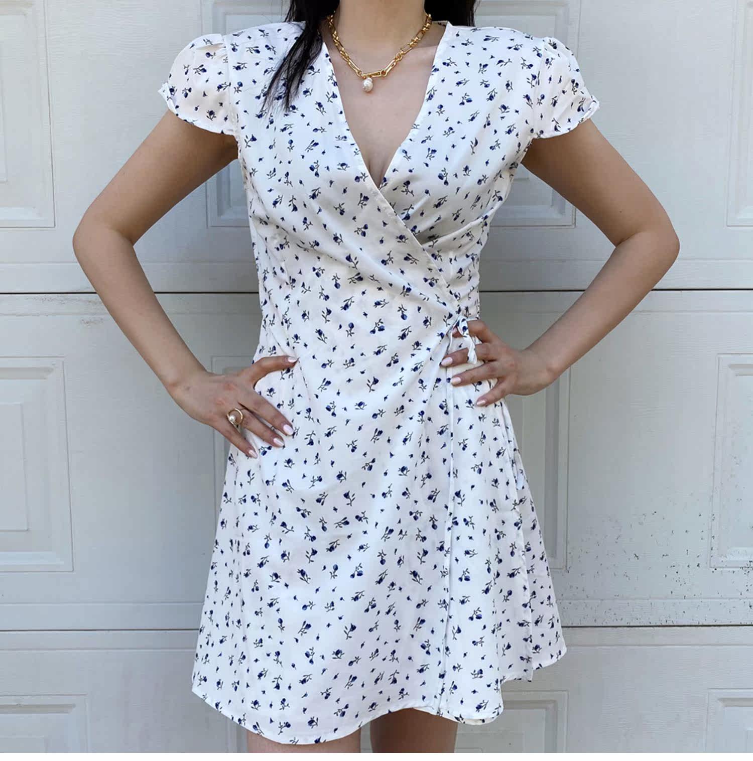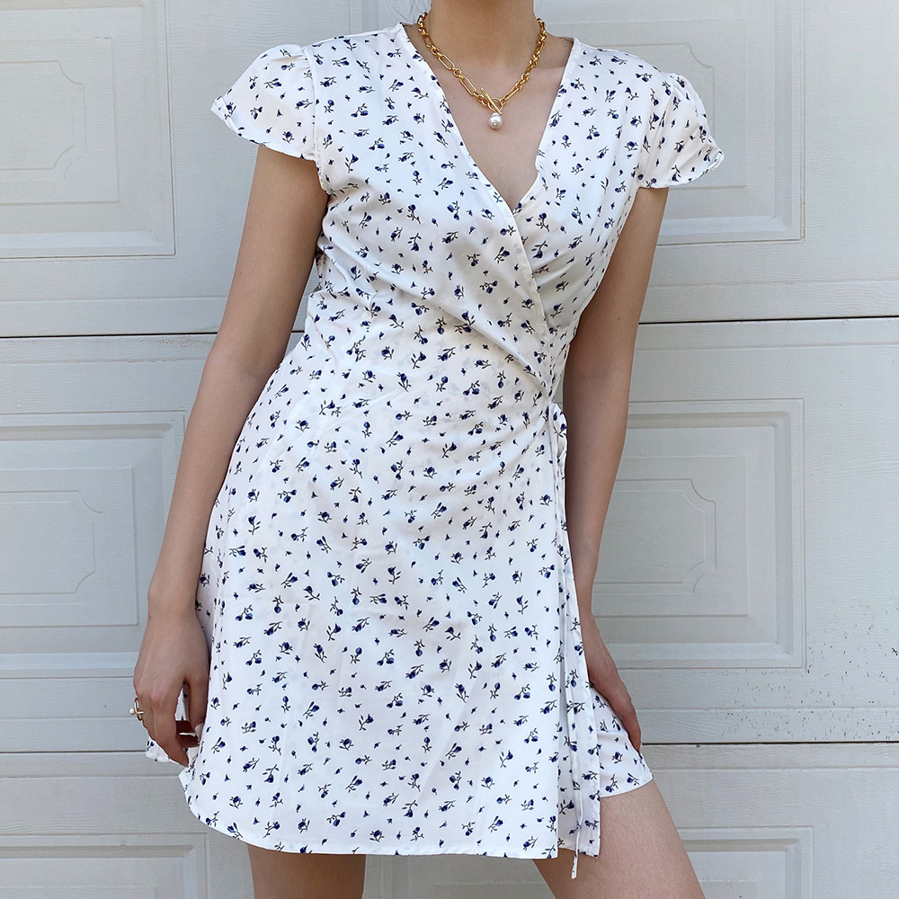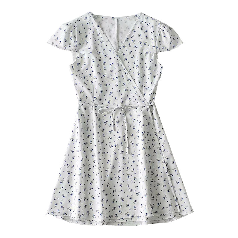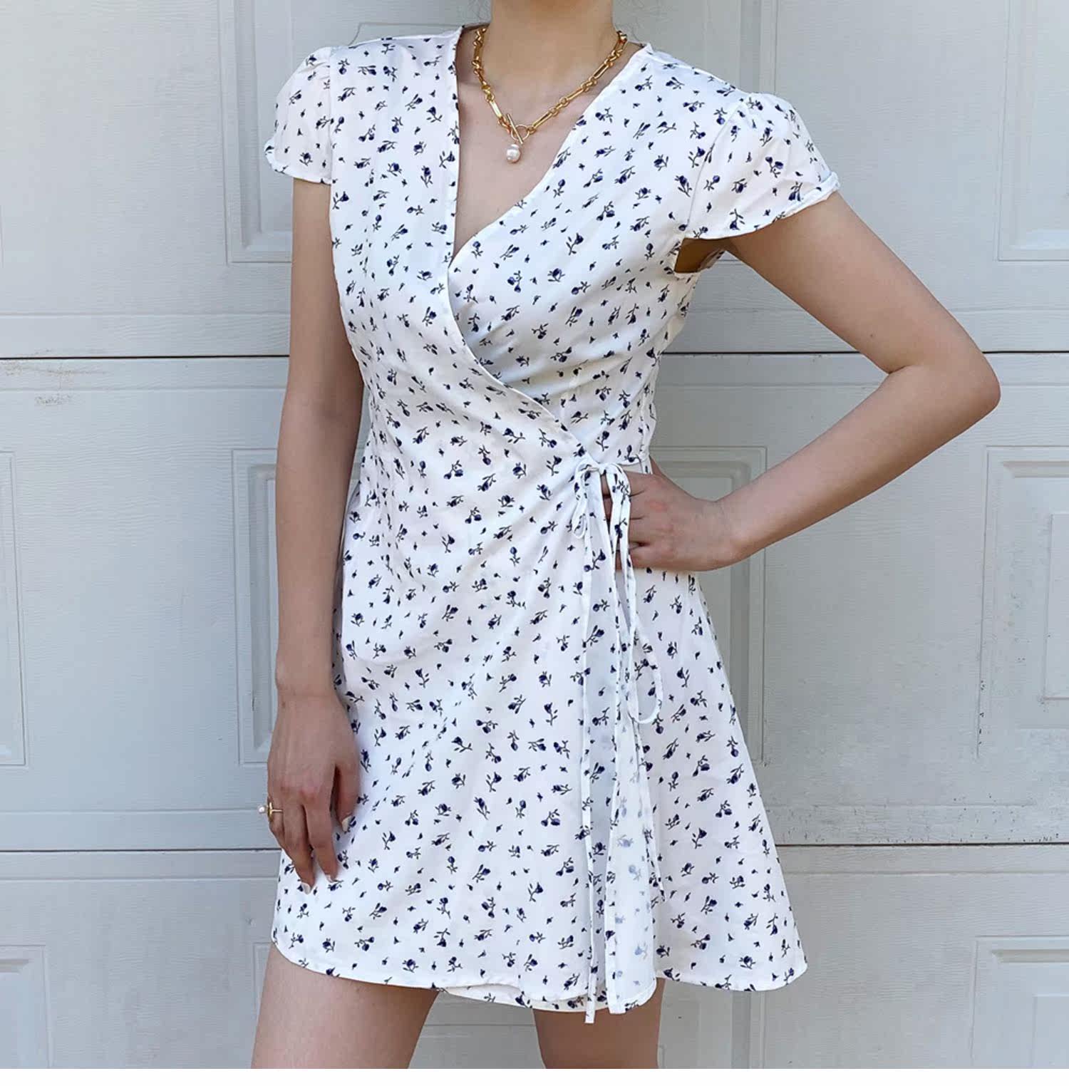 Ретро приталенное платье, юбка, мини-юбка, французский стиль, цветочный принт, V-образный вырез